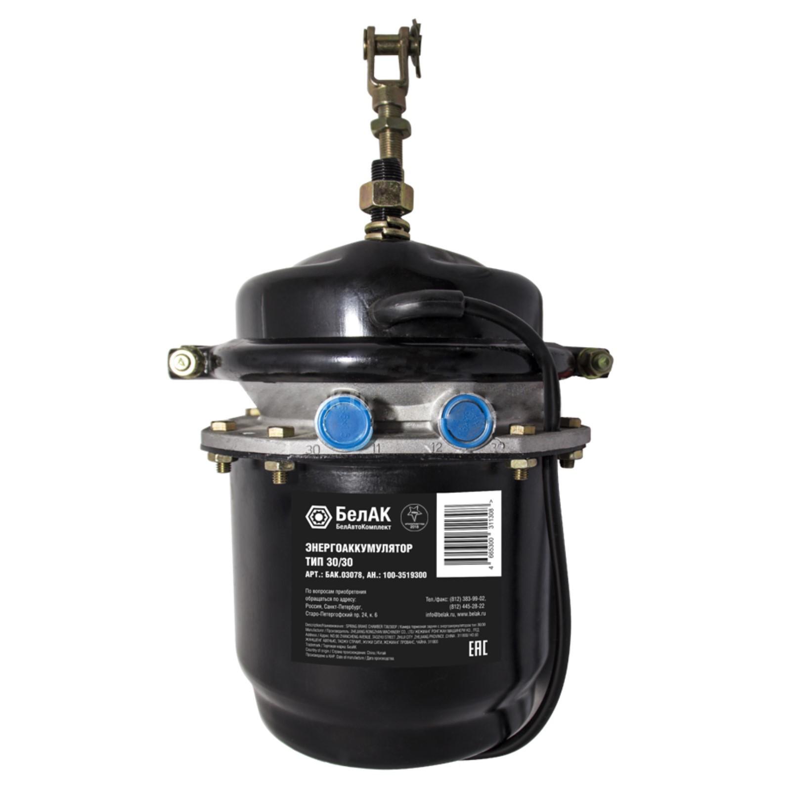 Тормозная камера с энергоаккумулятором тип 30/30 производства компании «БелАвтоКомплект» БАК.03078 предназначена для приведения в действие тормозов задней оси грузовых автомобилей, спецтехники и других моделей а/м.