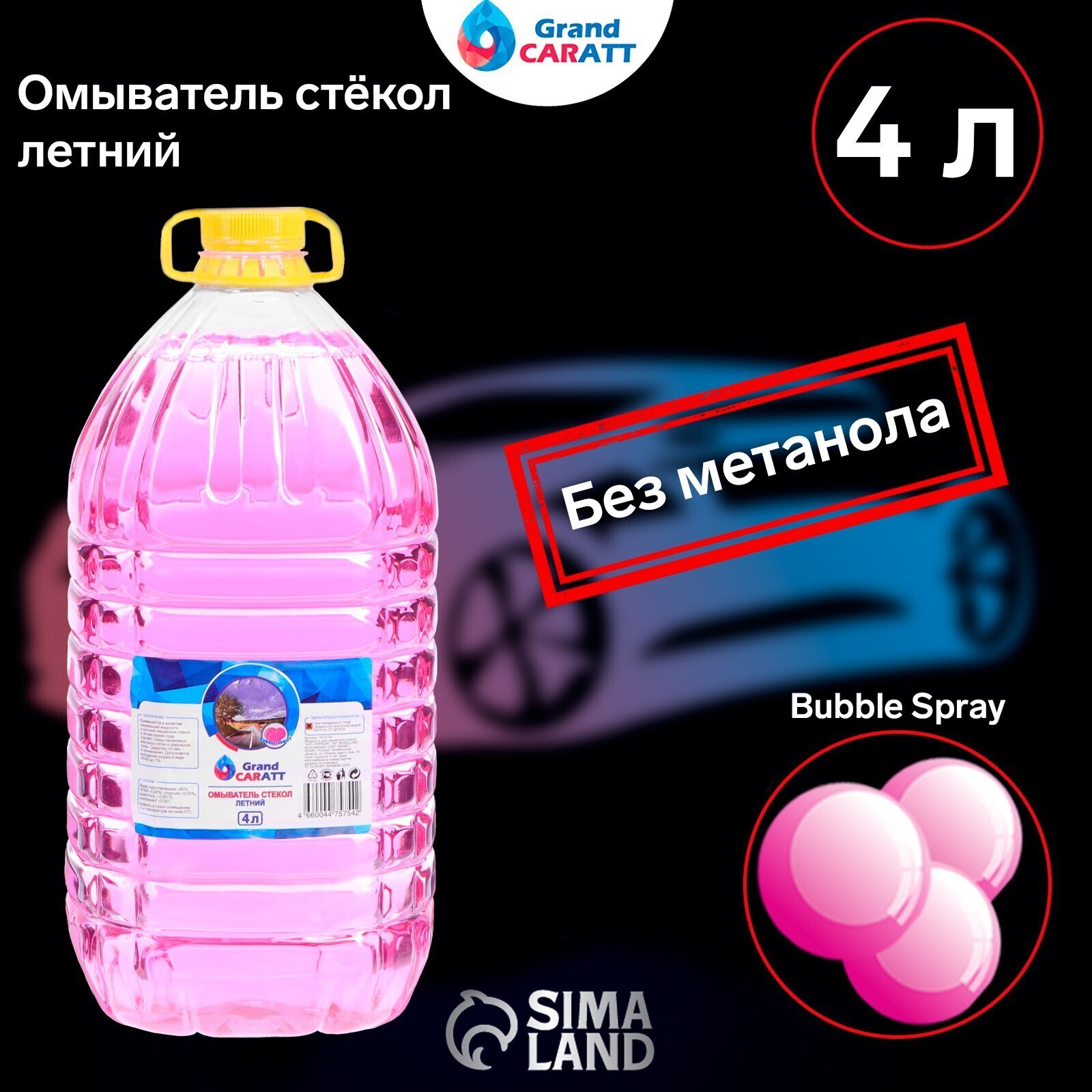 Омыватель стёкол Grand Caratt летний, Антимуха, Bubble Spray, 4 л
