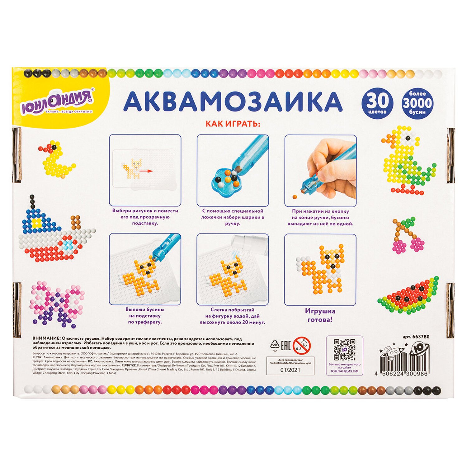 Аквамозаика Юнландия 30 цветов 3000 бусин 663780
