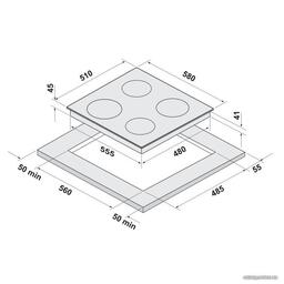 • Подробная информация о конфорках Дальняя левая: 145 мм * 1,2 кВт; Дальняя правая: 145/180 мм * 0,7/1,7 кВт; Ближняя левая: 180 мм * 1,8 кВт; Ближняя правая: 145 мм * 1,2 кВт
