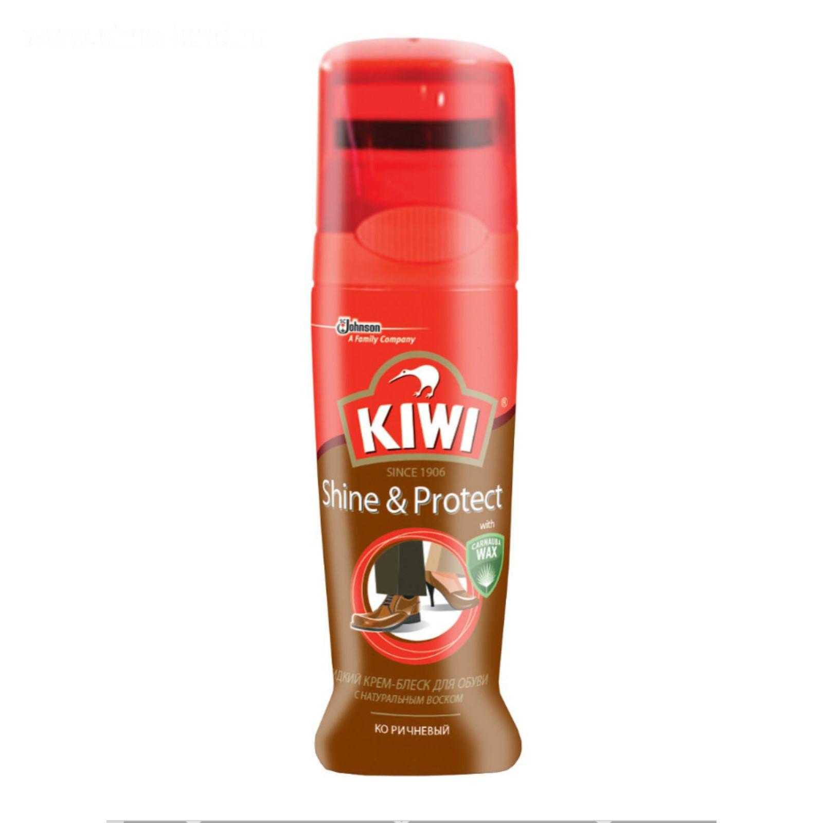 Жидкий крем-блеск для обуви Kiwi Shine & Protect, коричневый, 75 мл