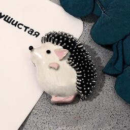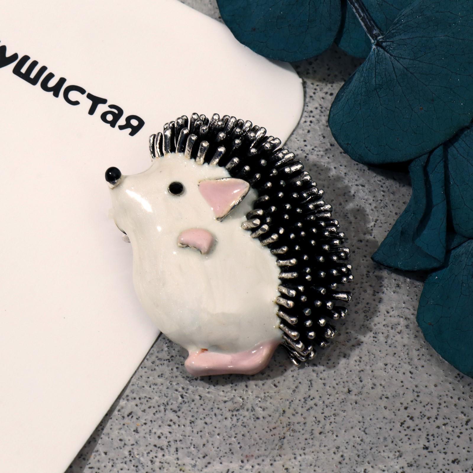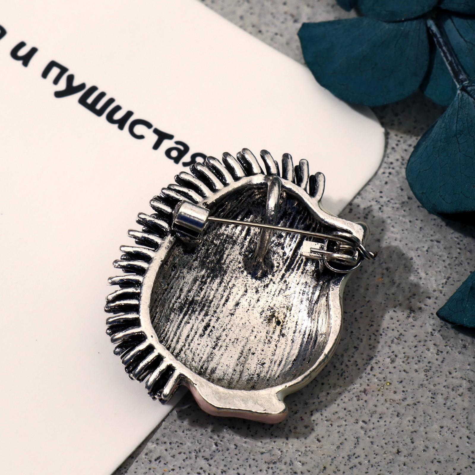 Брошь "Ёжик" мечтатель, цвет бело-розовый в чернёном в серебре