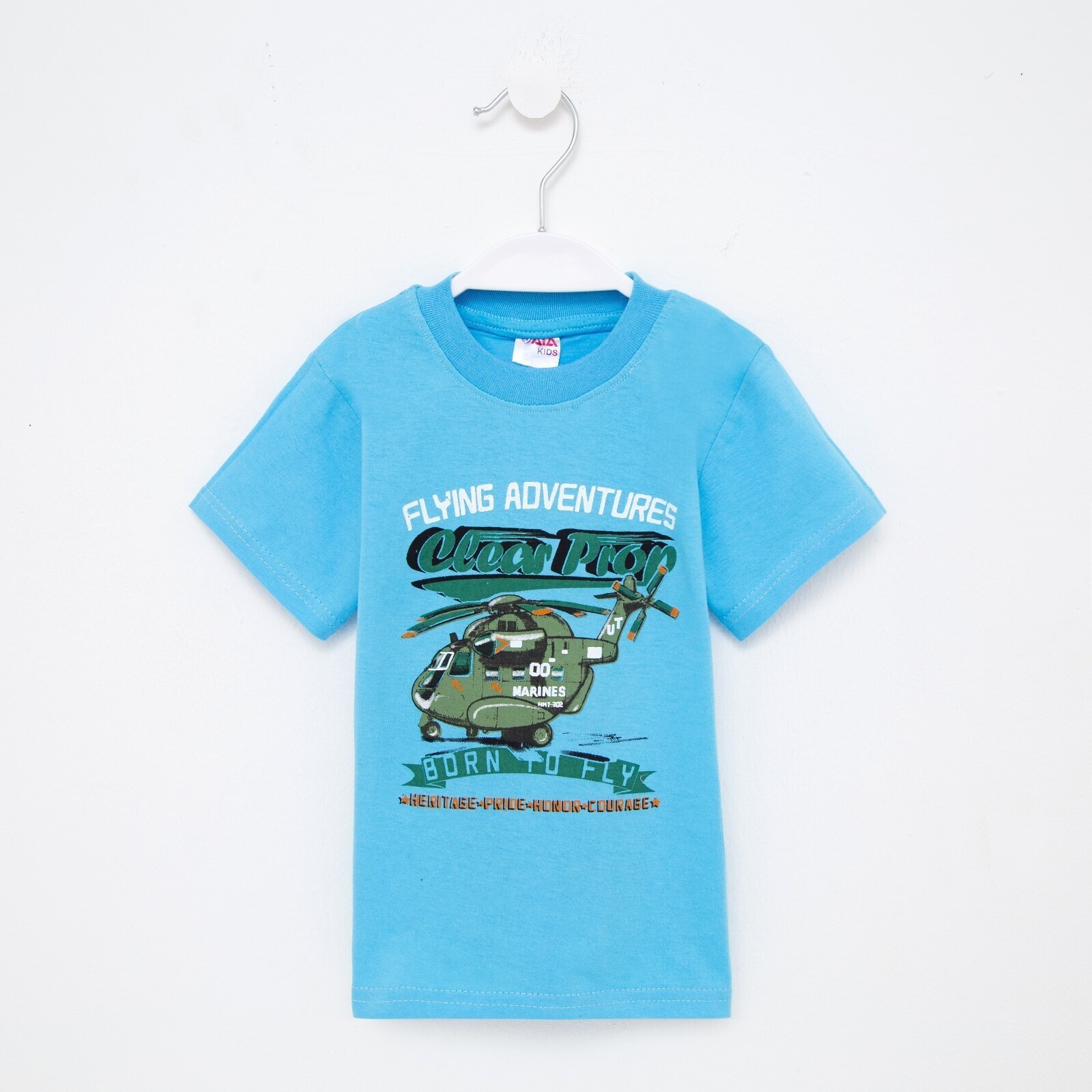 Футболка для мальчика, цвет голубой/вертолет, рост 98 см