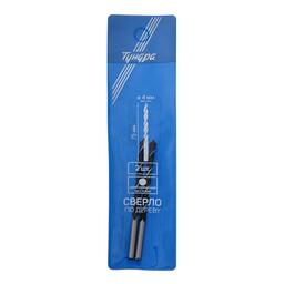 Сверло по дереву ТУНДРА, цилиндрический хвостовик, 4 х 75 мм, 2 шт.