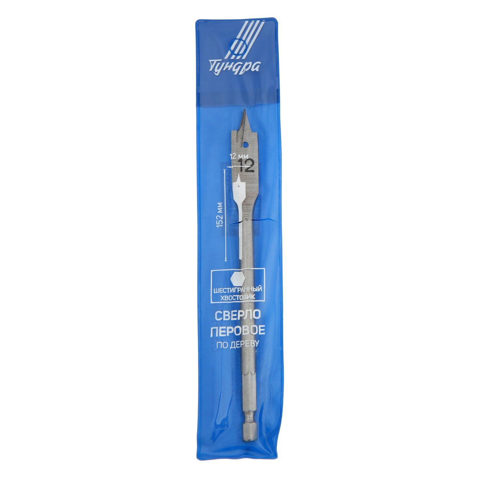 Сверло по дереву перовое ТУНДРА, шестигранный хвостовик, 12 х 152 мм