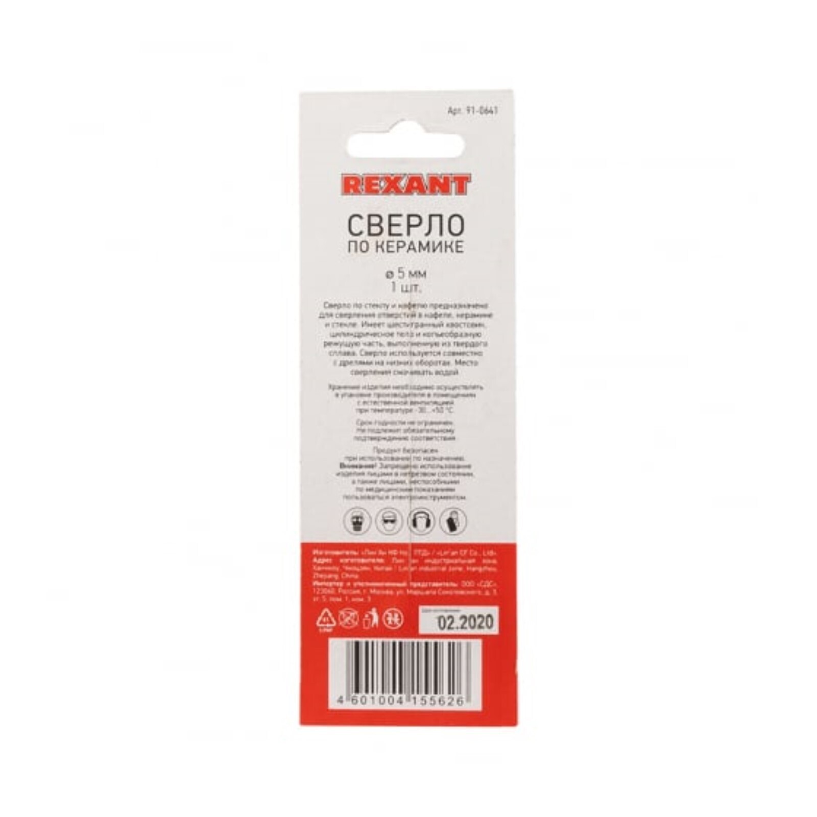 Сверло по стеклу и керамике REXANT, шестигранный хвостовик, 76 мм, d=5 мм