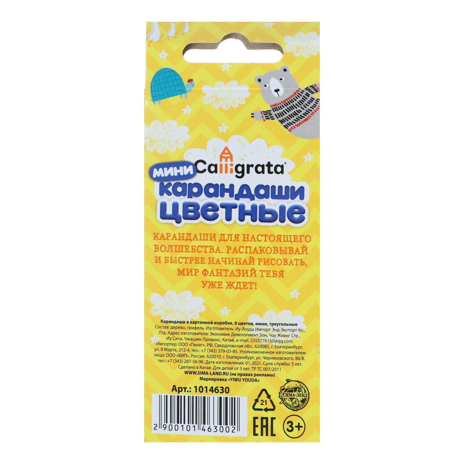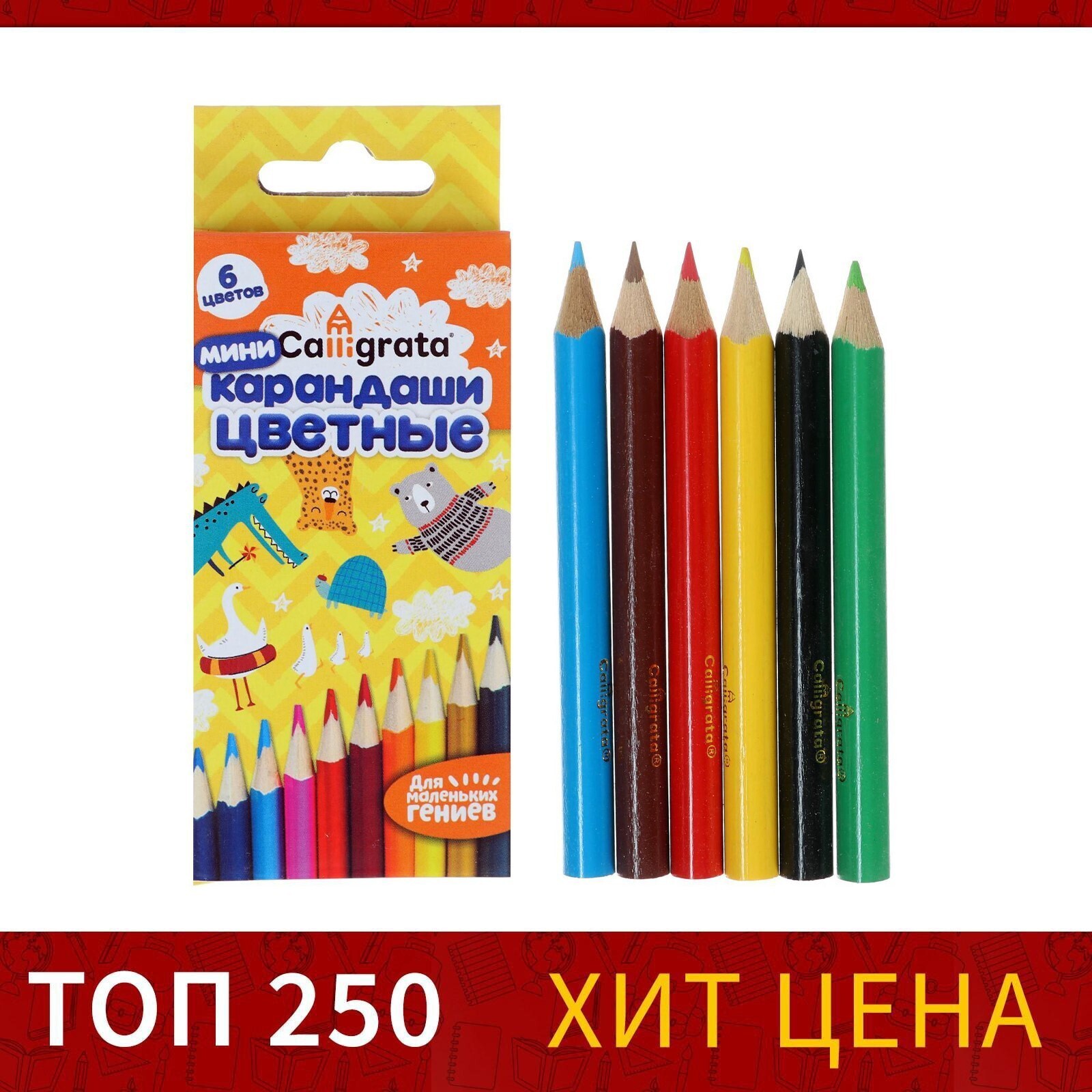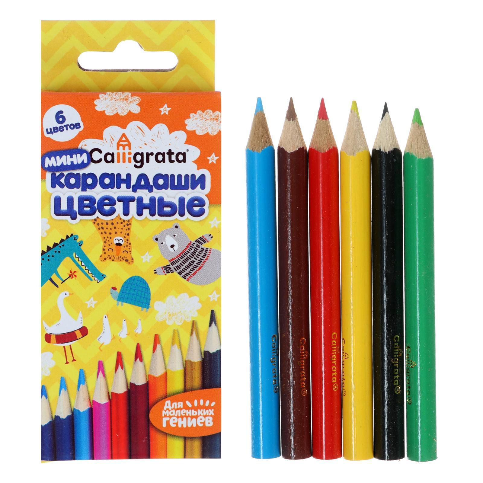 Карандаши 6 цветов "МИНИ" в картонной коробке, корпус треугольный, деревянный