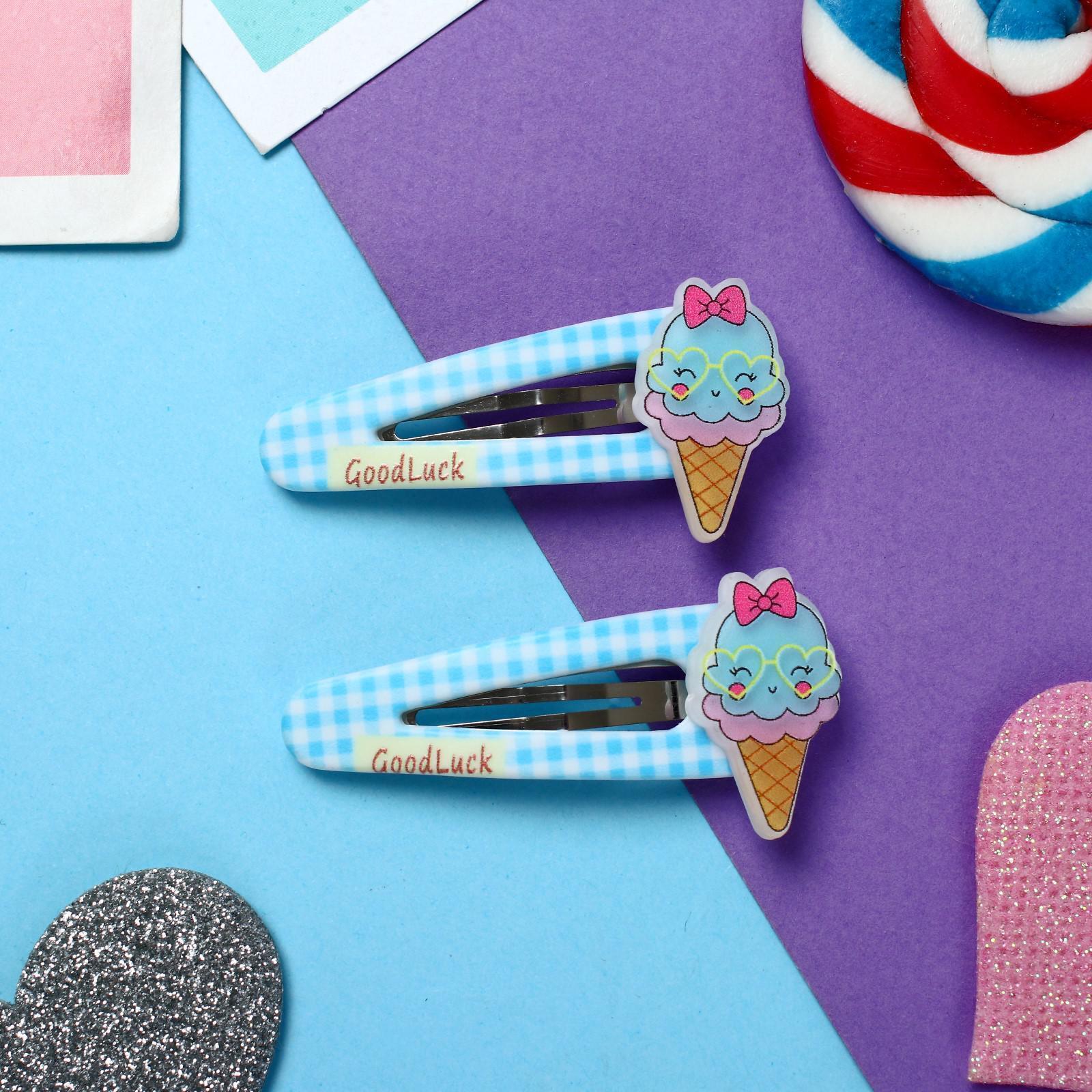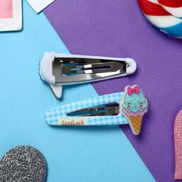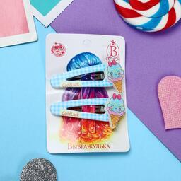 Невидимка для волос "Абель" (набор 2 шт) объемный, мороженки, 5 см, голубой