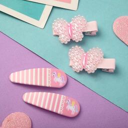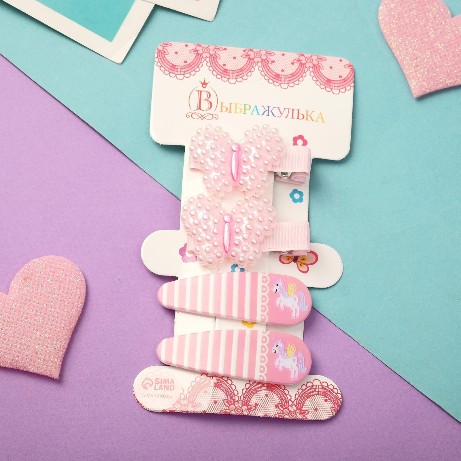 Набор для волос "Искорка" (2 зажима, 2 невидимки) бабочка, 4 и 5 см, розовый