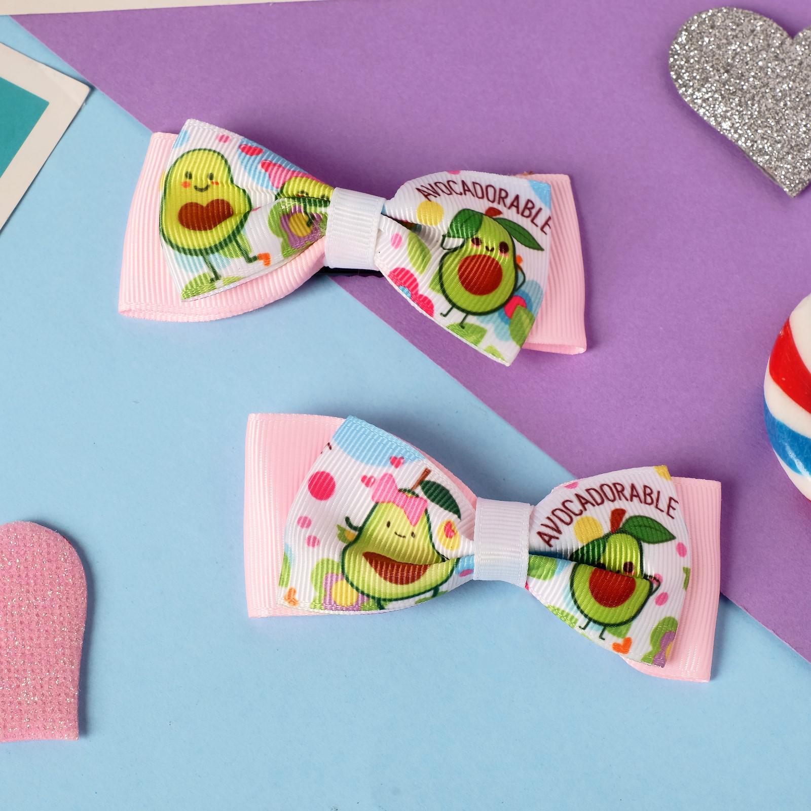 Зажим для волос "Бантик Авокадик" (набор 2 шт) двойной, 4,5 см