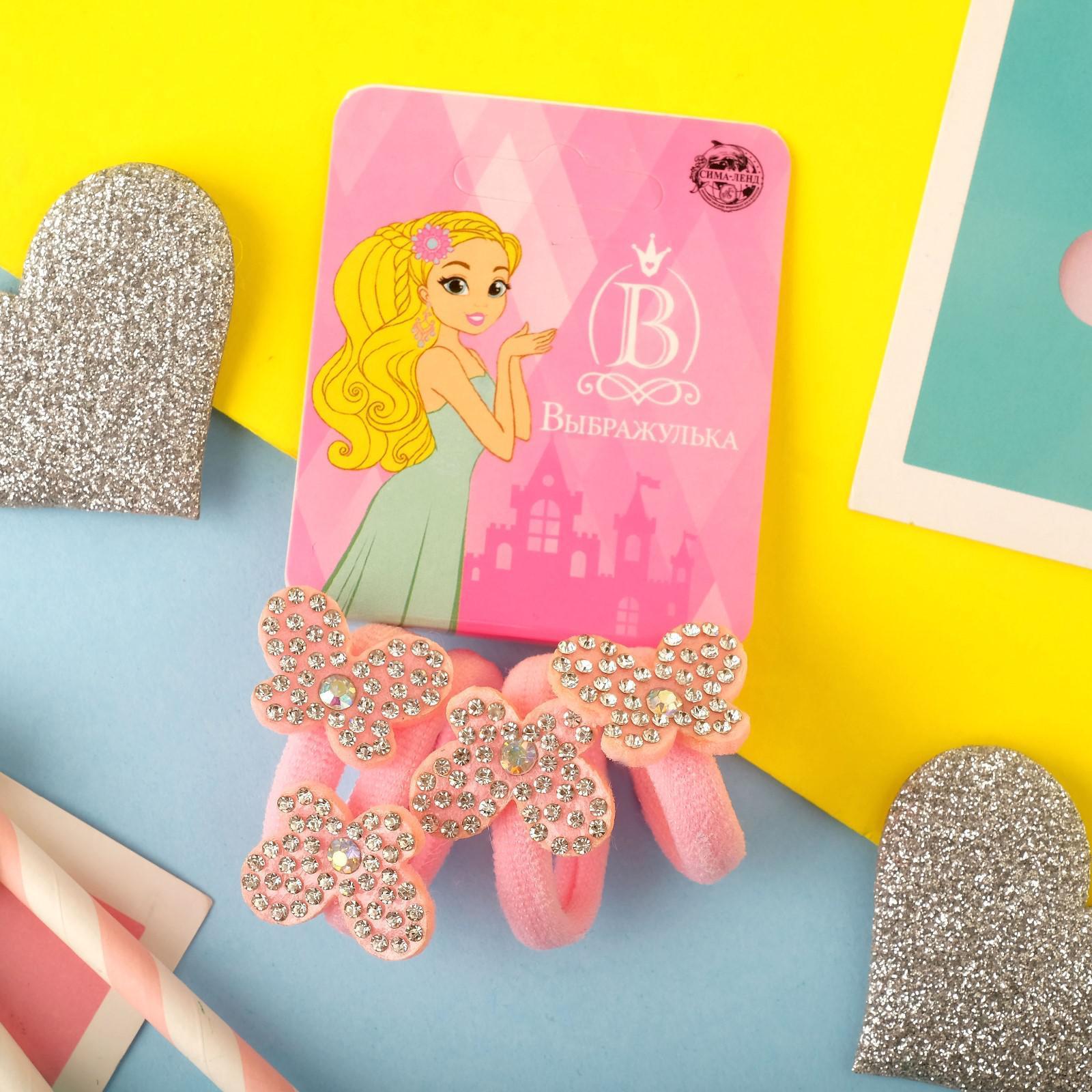 Резинка для волос "Розовый перелив" (набор 4 шт) бабочки, розовый
