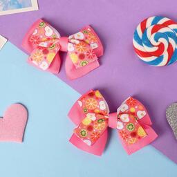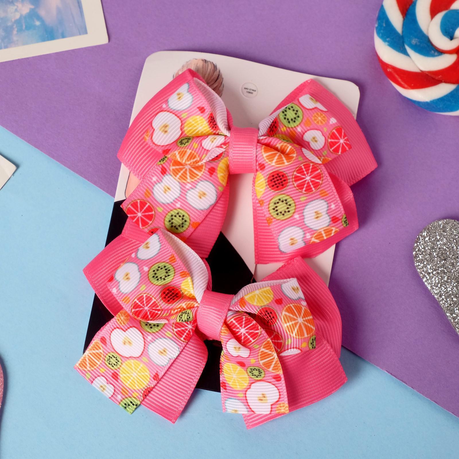 Зажим для волос "Бантик Клер" (набор 2 шт) фруктики, 4,5 см, розовый