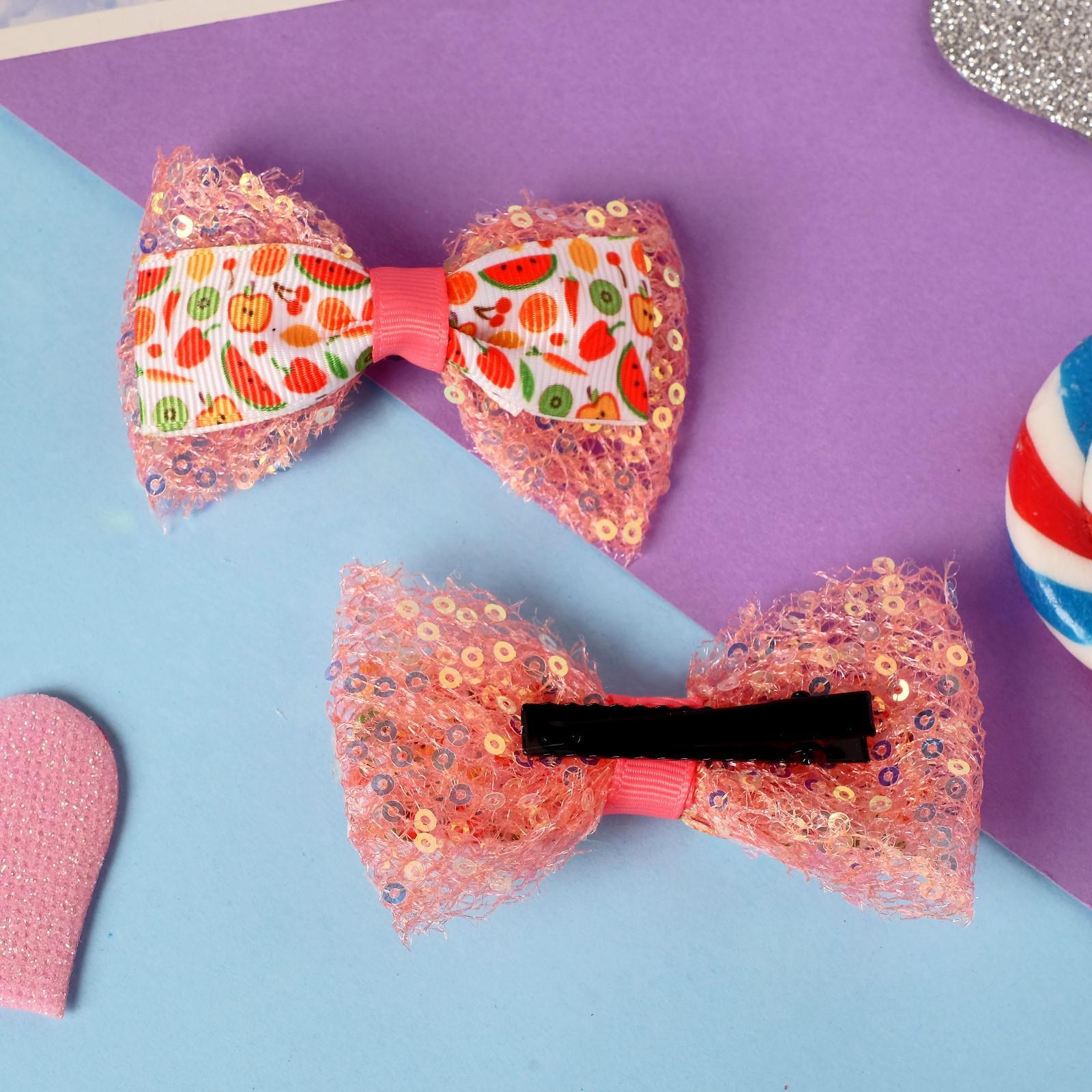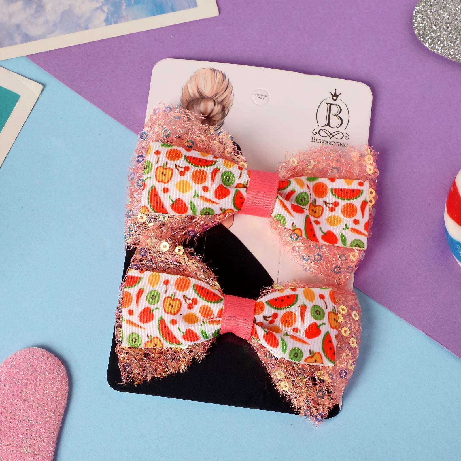 Зажим для волос "Бантик Кристин" (набор 2 шт) овощи, 4,5 см, бледно-розовый