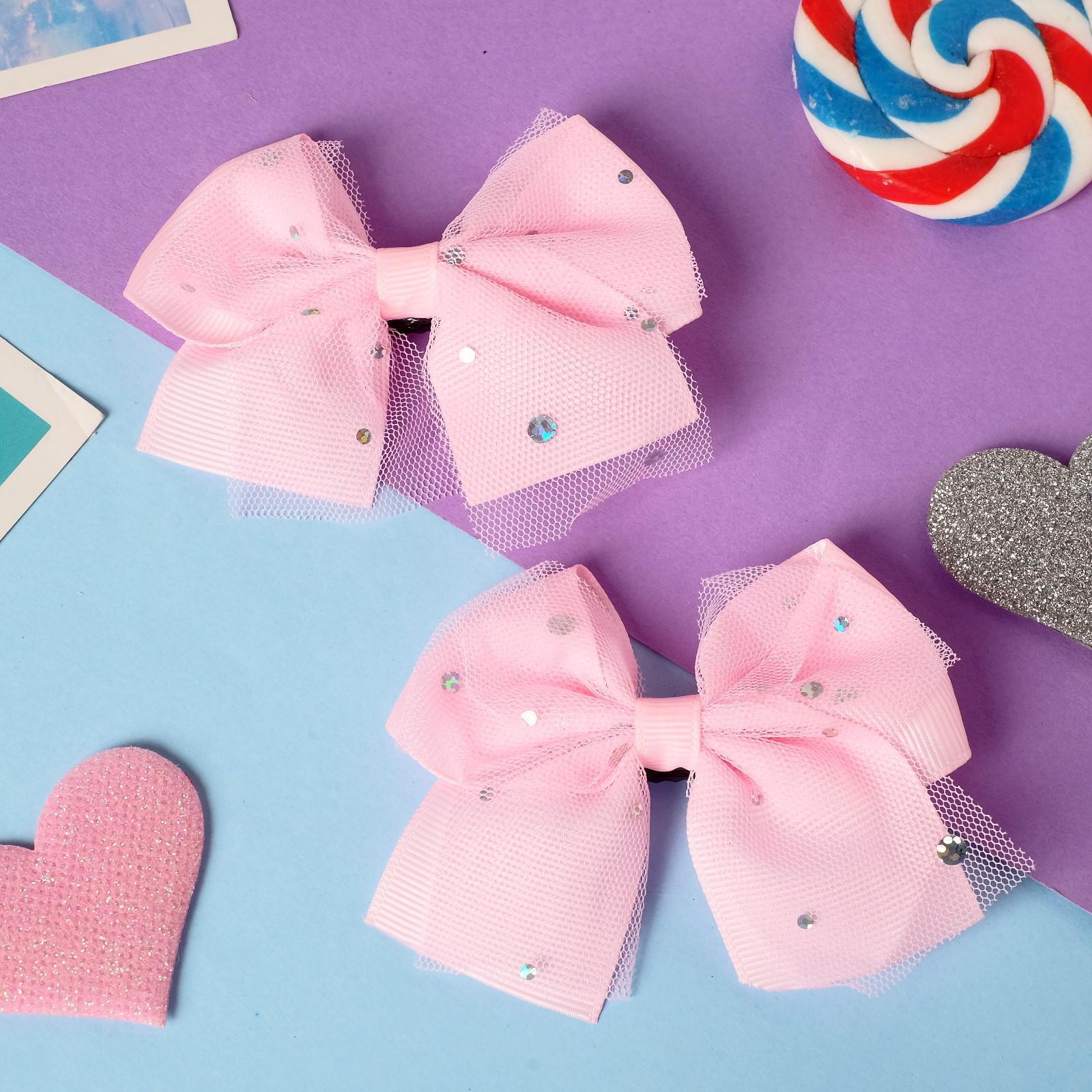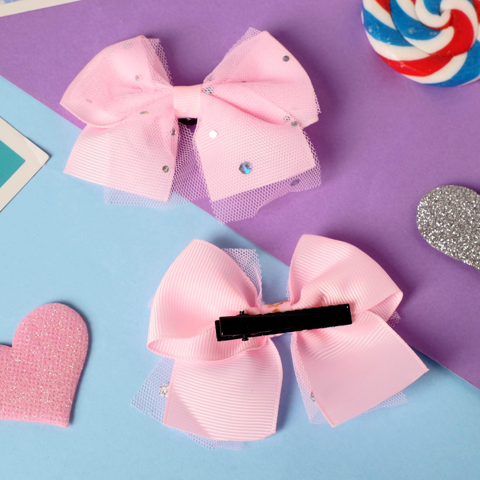 Зажим для волос "Бантик Вивиан" (набор 2 шт) сверкание, 4,5 см, розовый