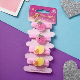 Резинка для волос "Кроха" (набор 4 шт) смайлик и сердечко, 2 см, розово-жёлтый