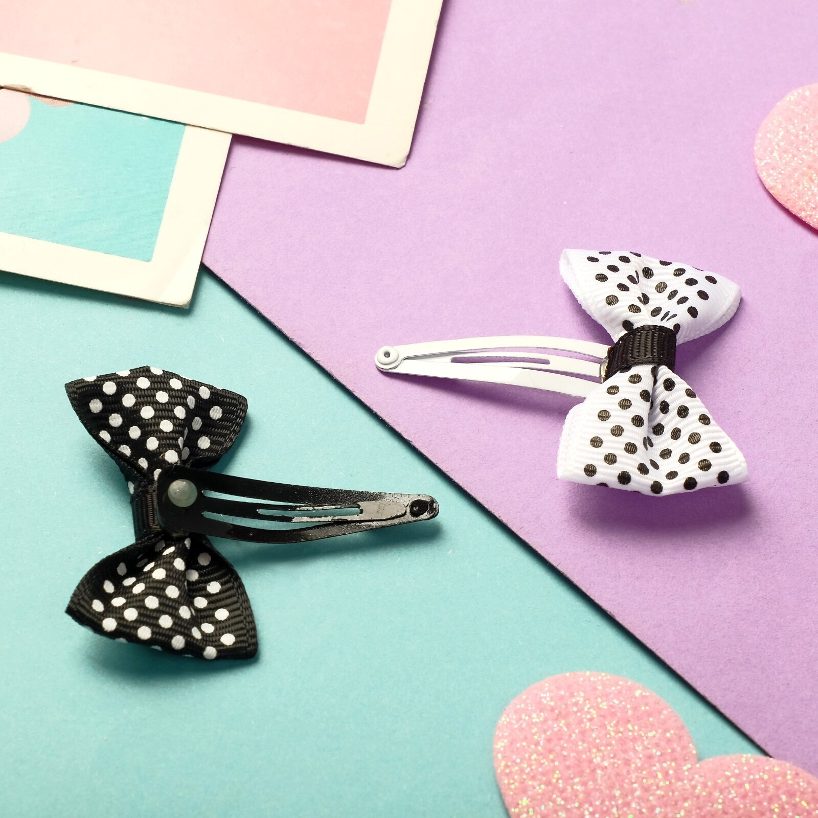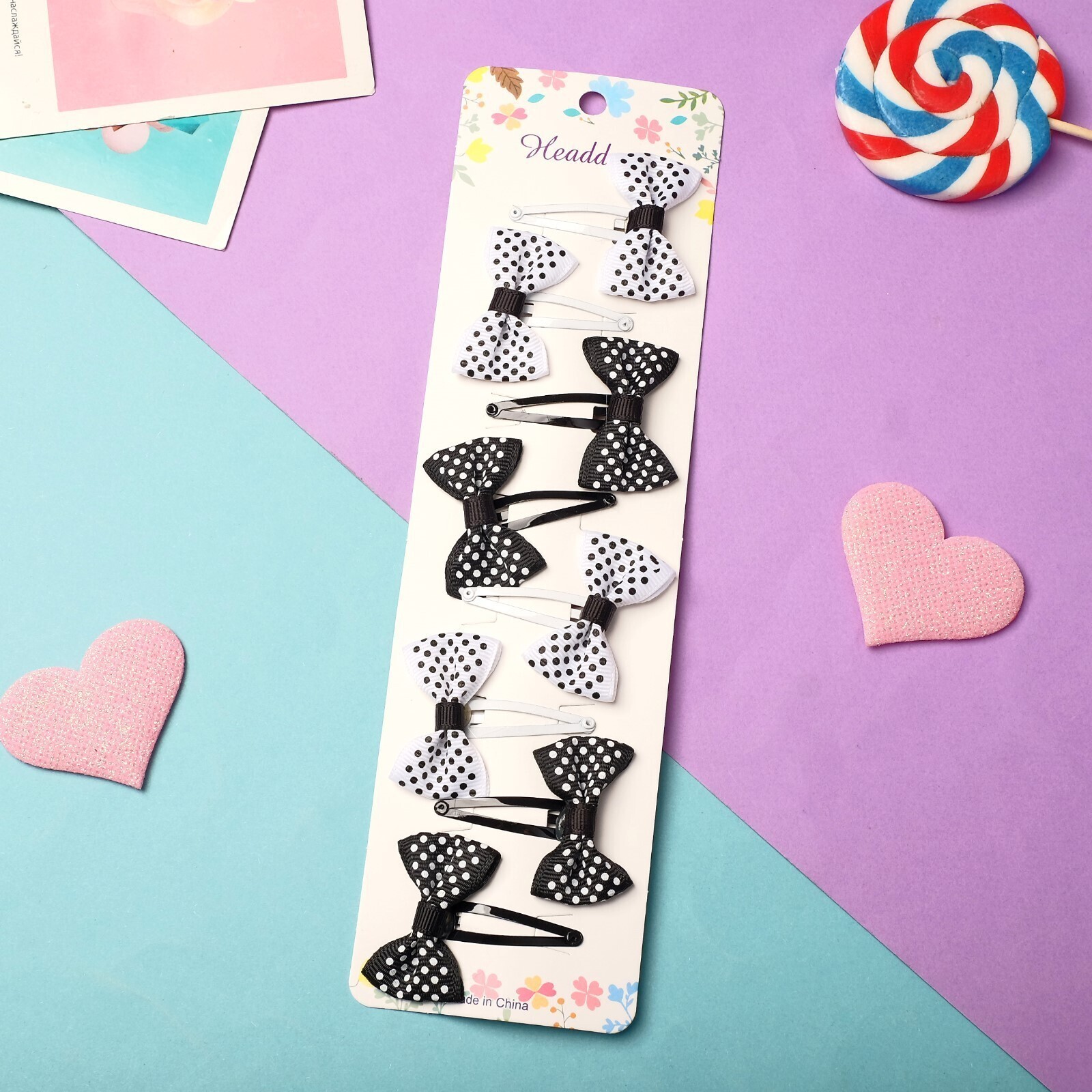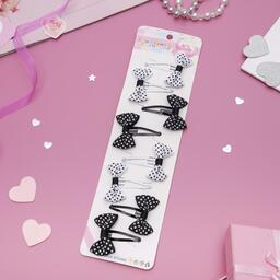 Невидимка для волос "Бантики" (набор 8 шт) горох, чёрно-белый