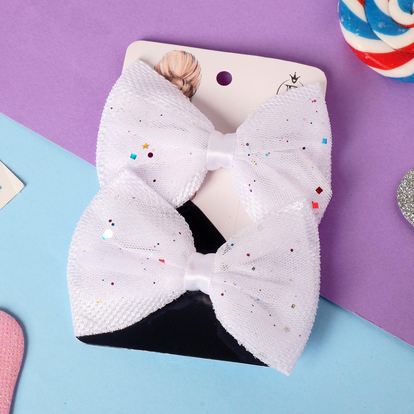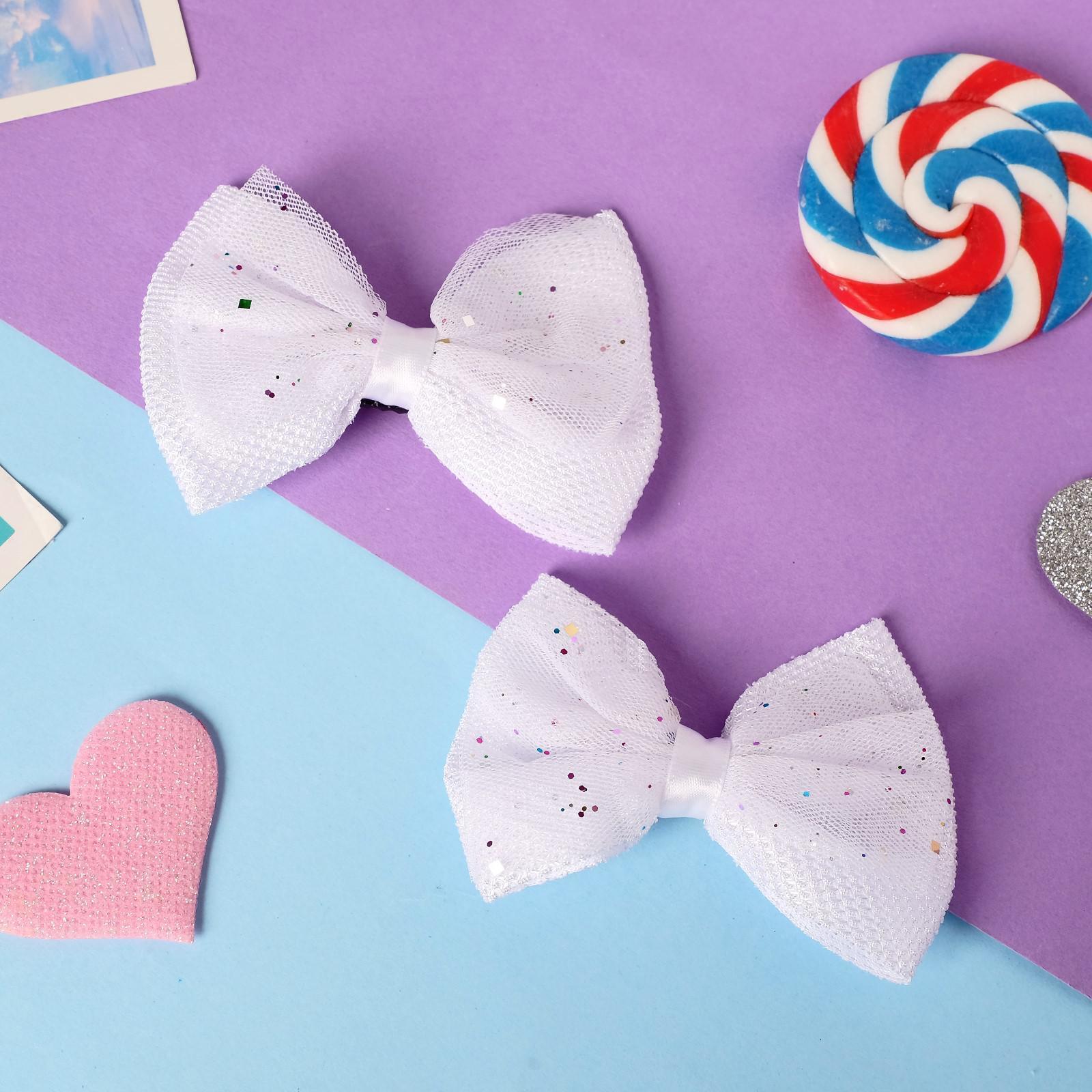 Зажим для волос "Бантик Вивиан" (набор 2 шт) диско, 4,5 см, белый