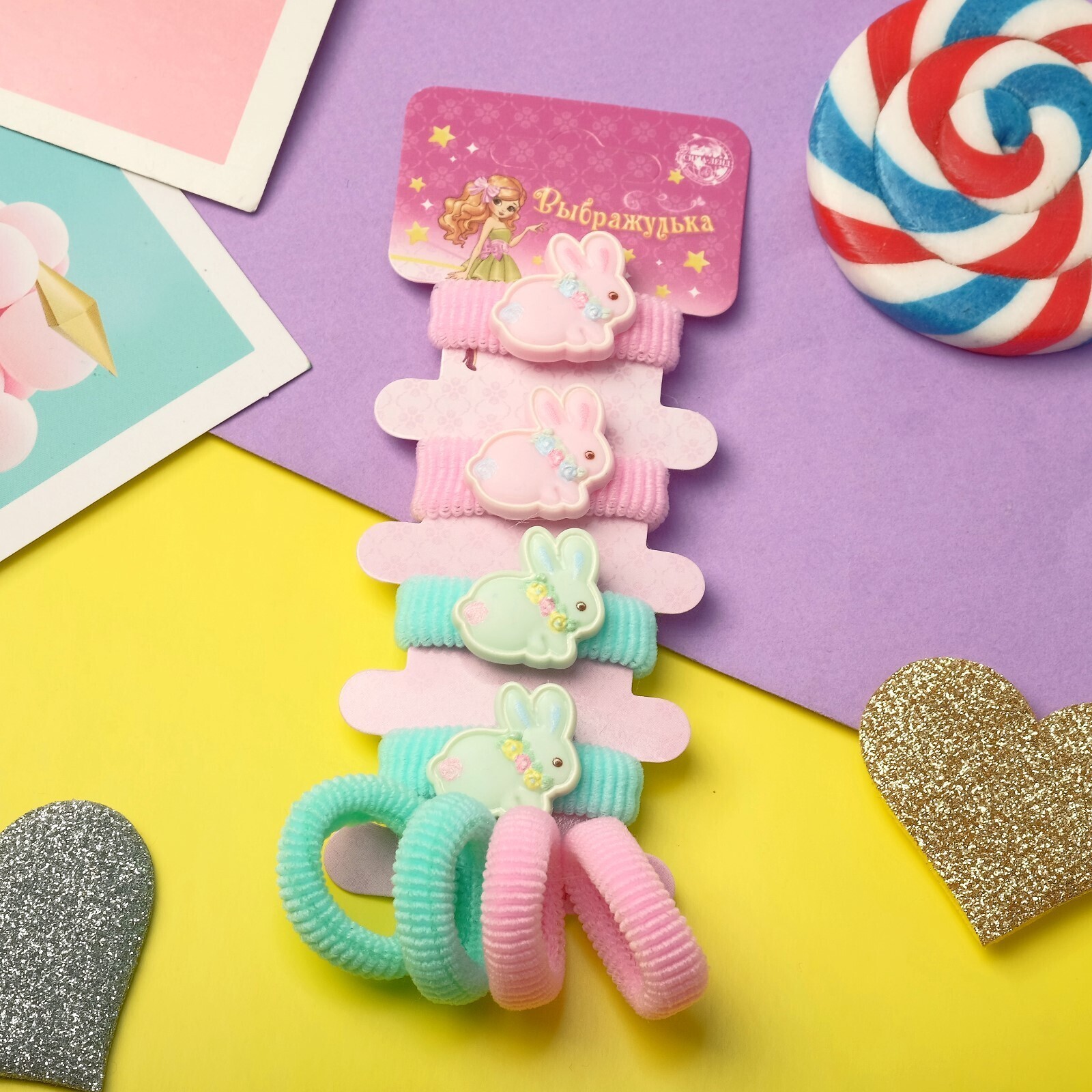 Резинка для волос "Кокетка" набор 8 шт зайка розовый,зеленый