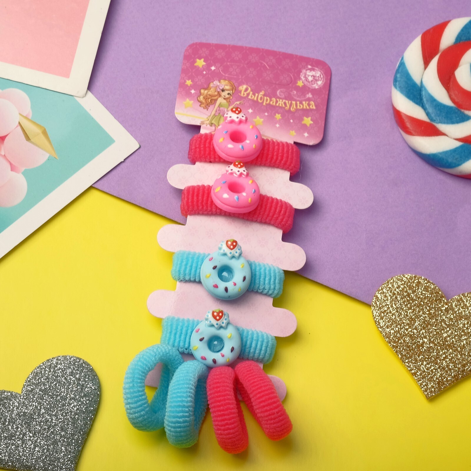 Резинка для волос "Кокетка" набор 8 шт пончик, красный, голубой