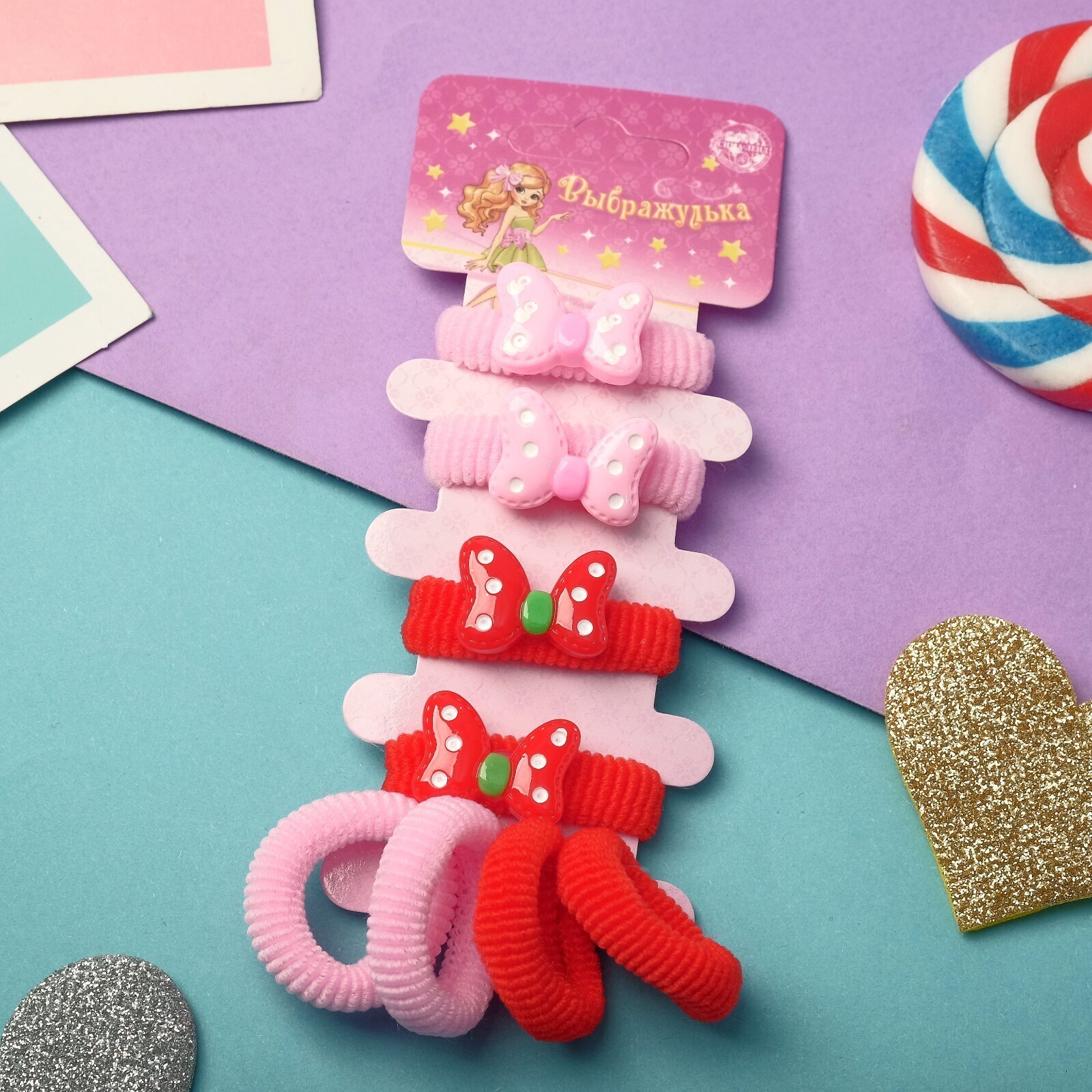 Резинка для волос "Кокетка" набор 8 шт бантик горох красный,розовый