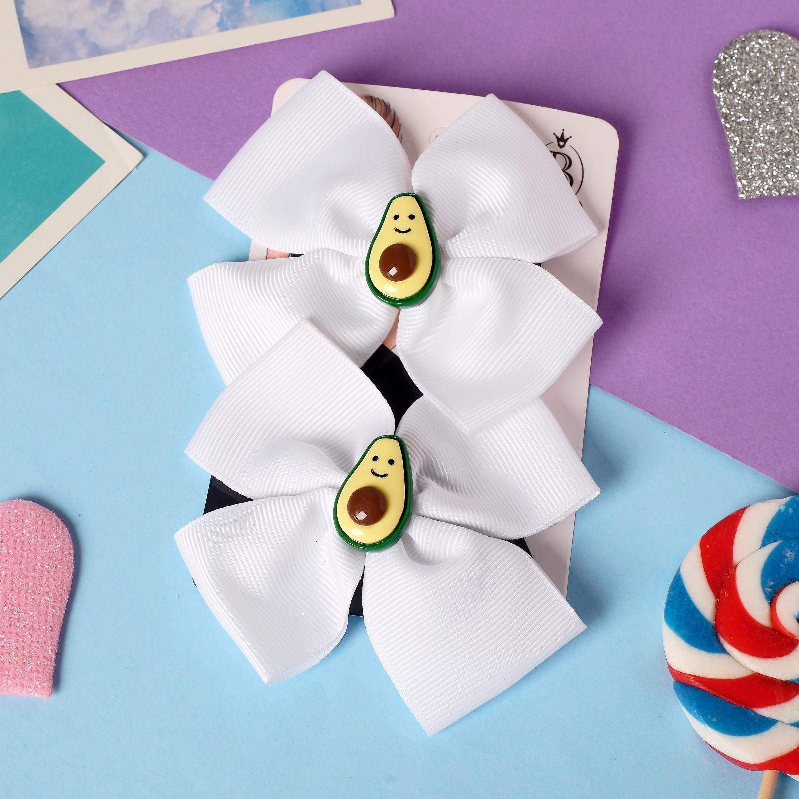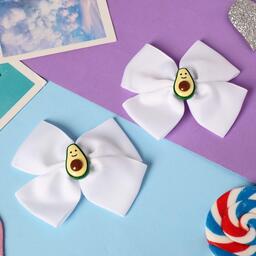 Зажим для волос "Бантик Авокадик" (набор 2 шт) подружки, 4,5 см, белый