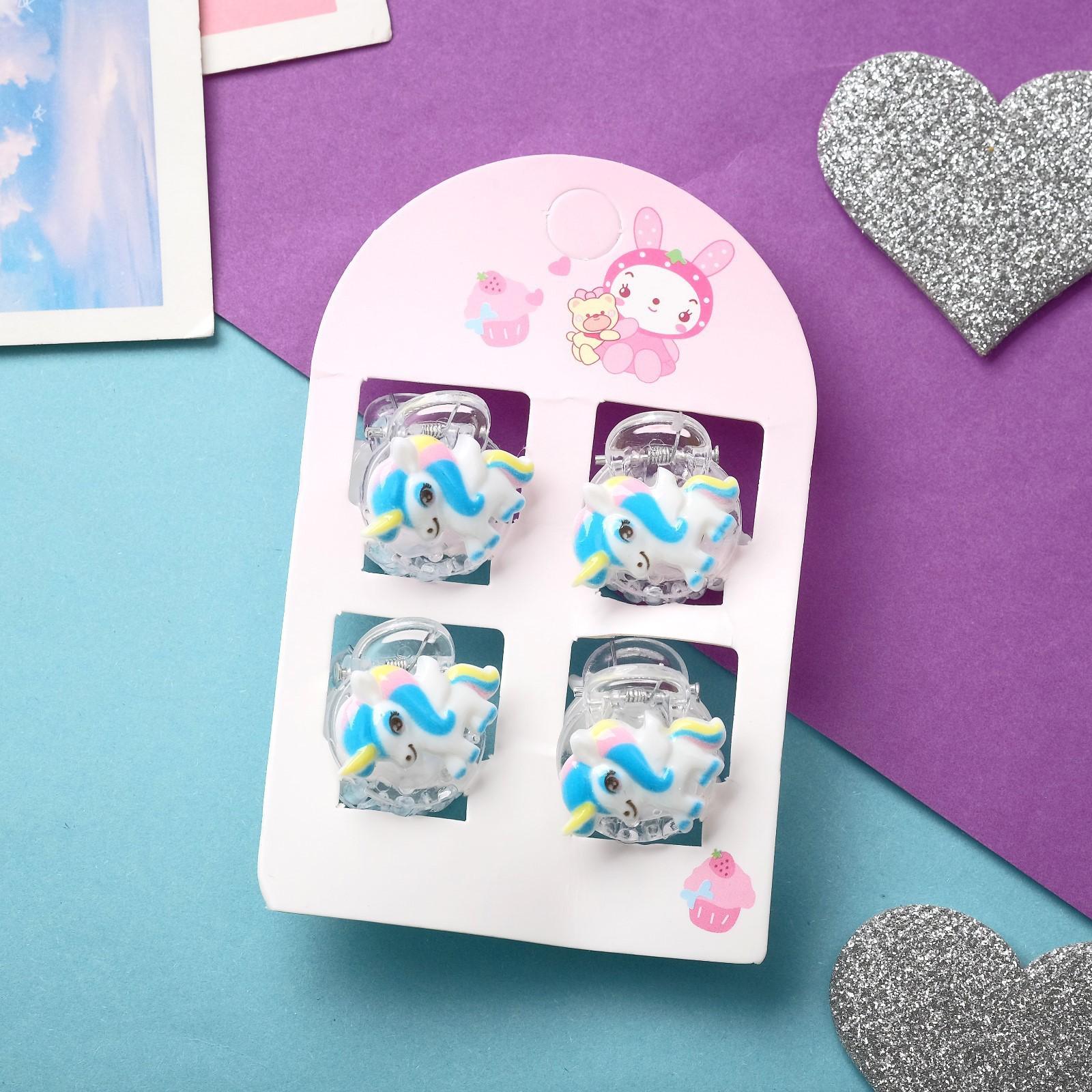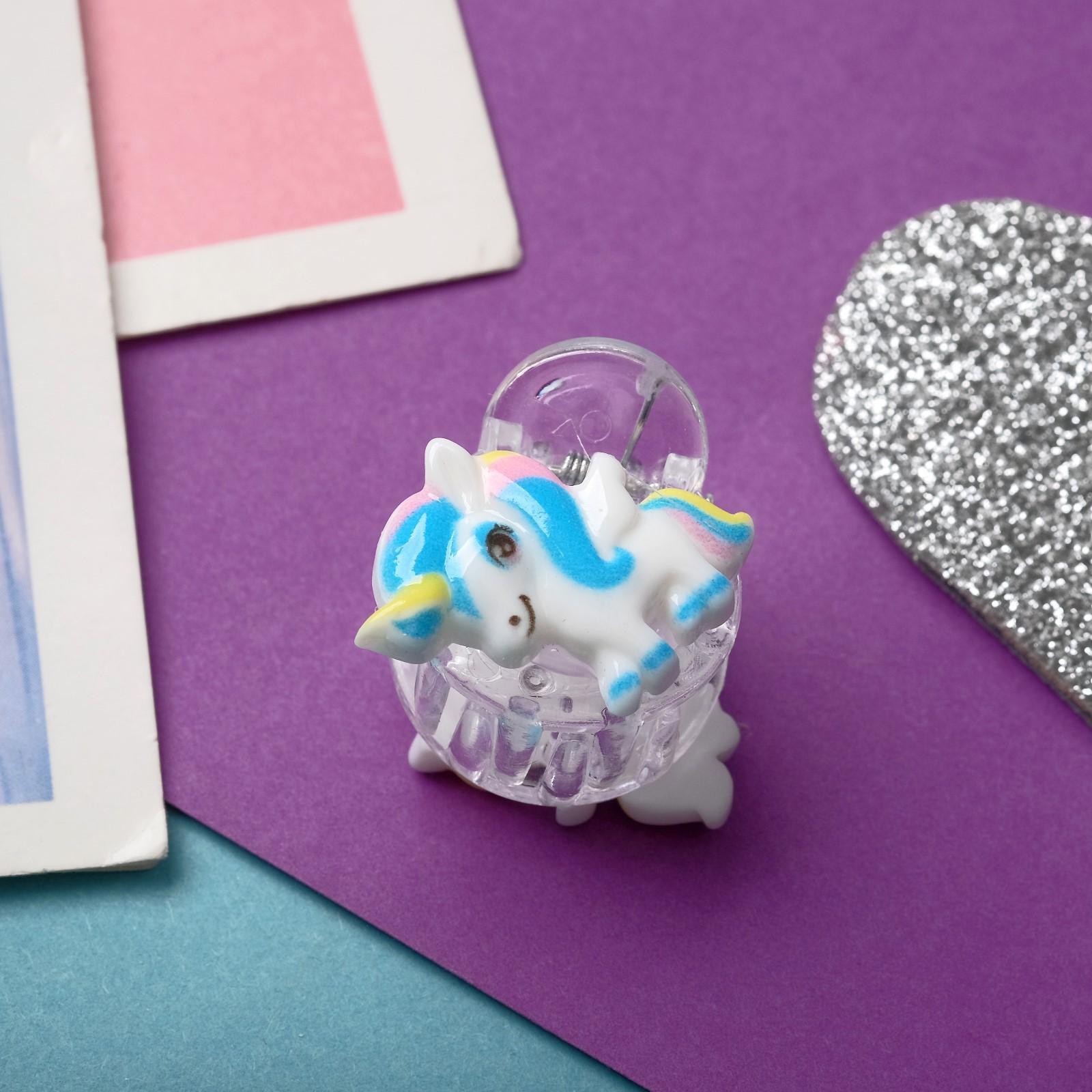 Краб для волос "Маленькая радость" (набор 4 шт) единорожек, 2 см, бело-голубой