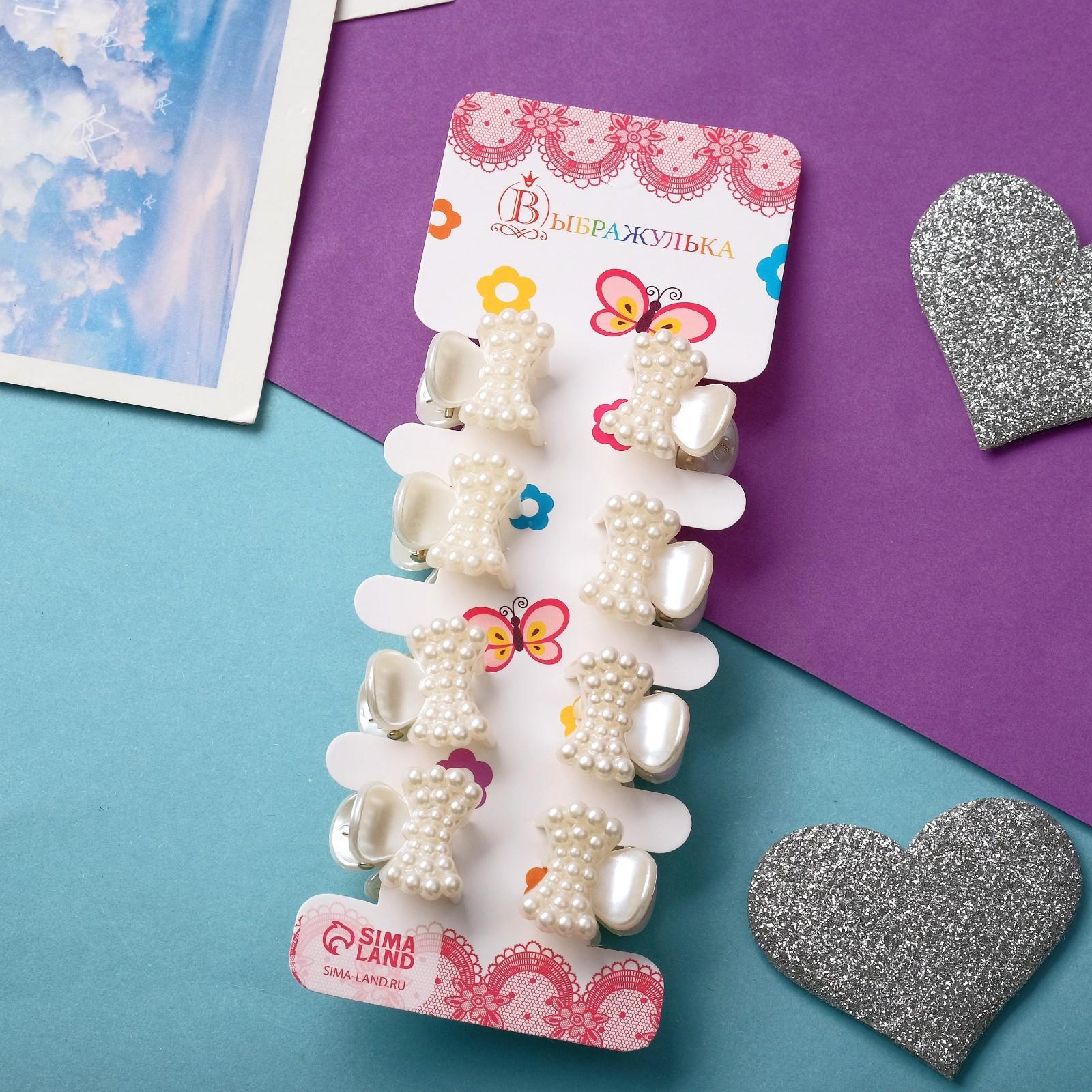 Краб для волос "Беатрис" (набор 8 шт) бантик, 2 см, белый