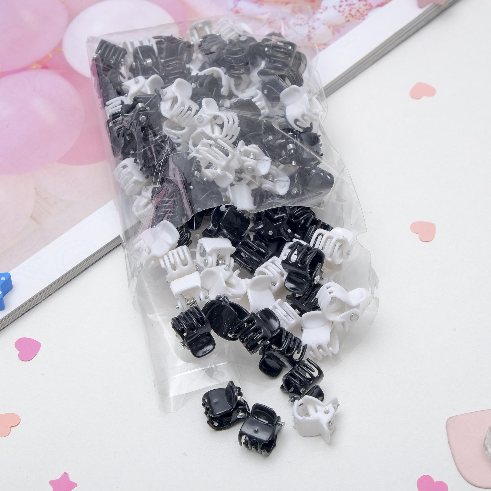 Краб для волос "Мини" (набор 100 шт) простой, 1 см, чёрно-белый