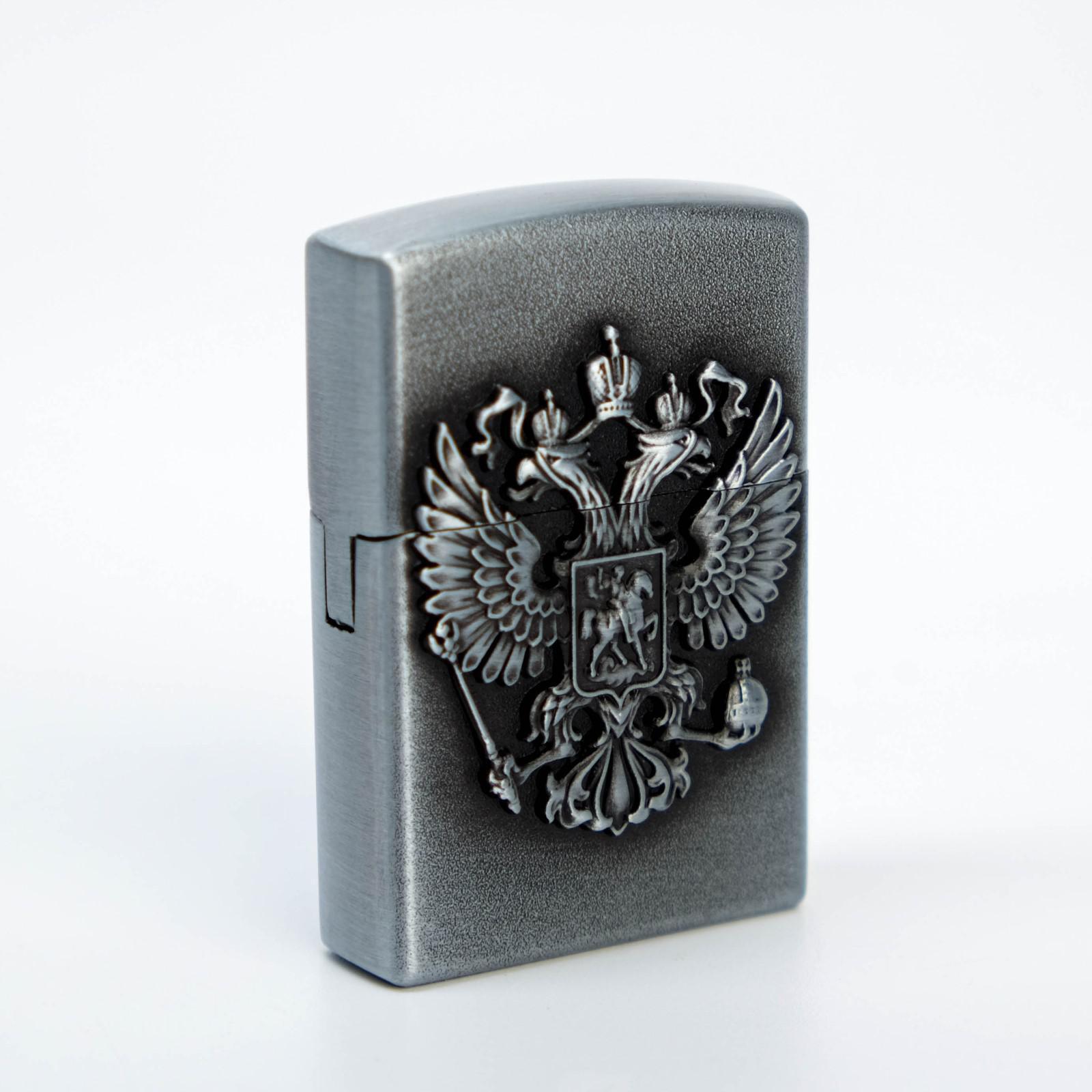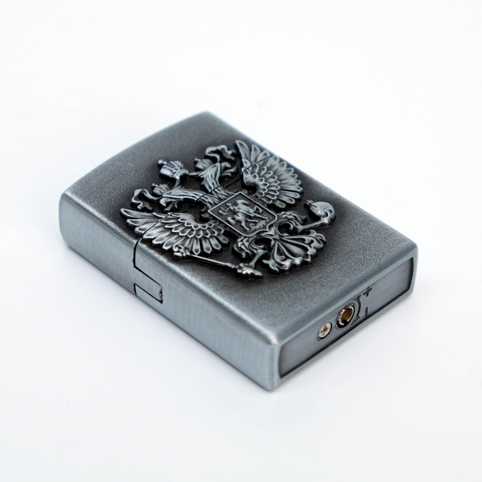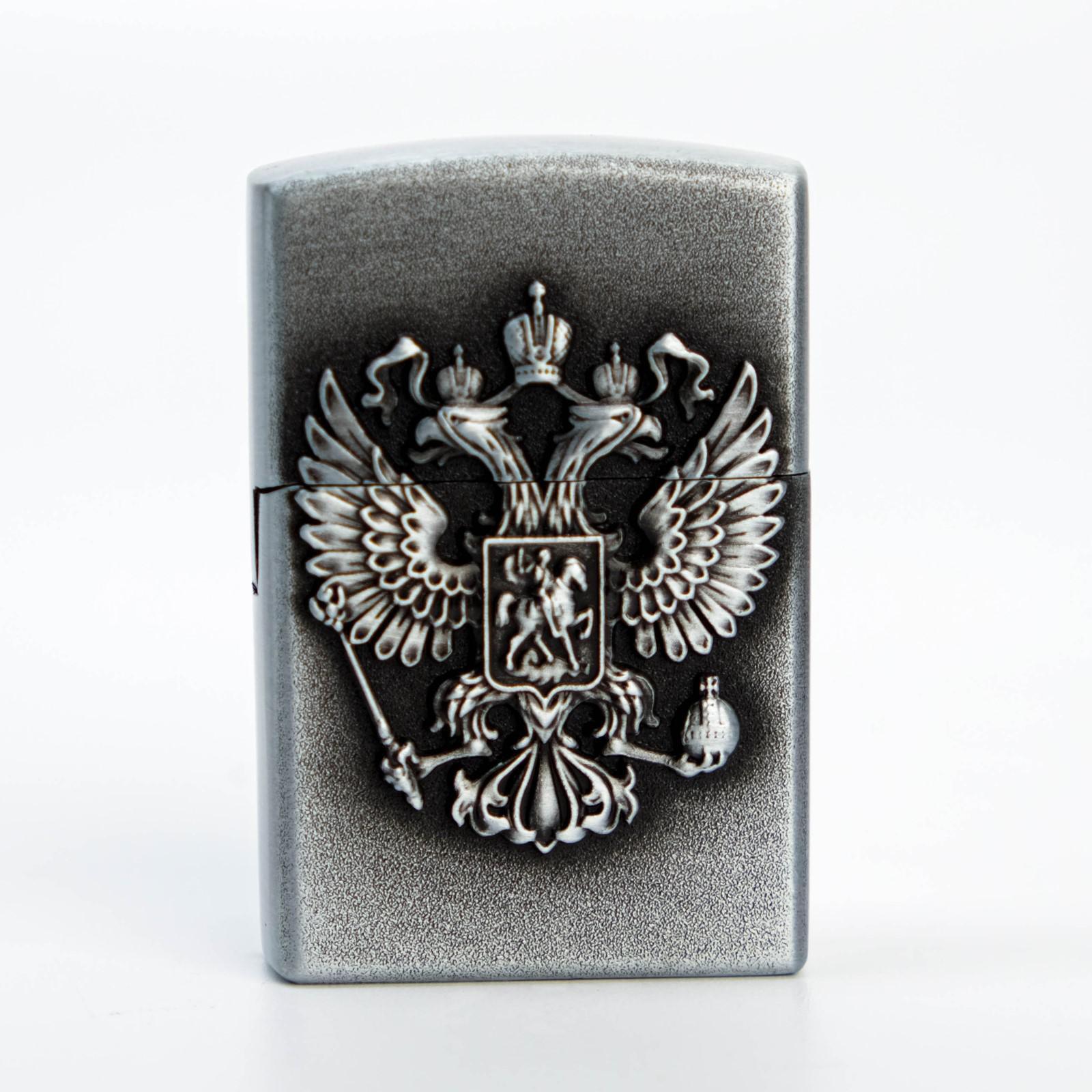 Зажигалка газовая "Герб России", 3.5 х 5.5 х1.2 см, серебро