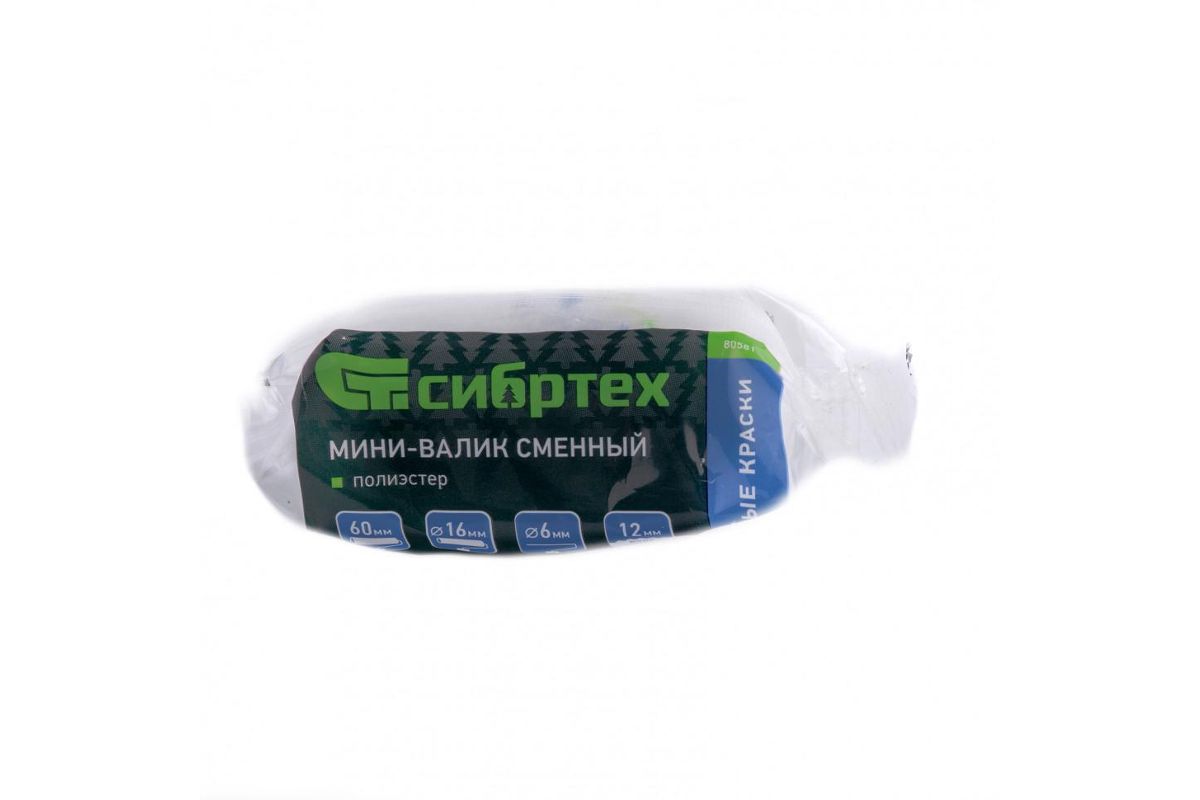 Мини-валик СИБРТЕХ сменный Водные краски, 60, ворс 12, D - 16, D ручки - 6, полиэстер