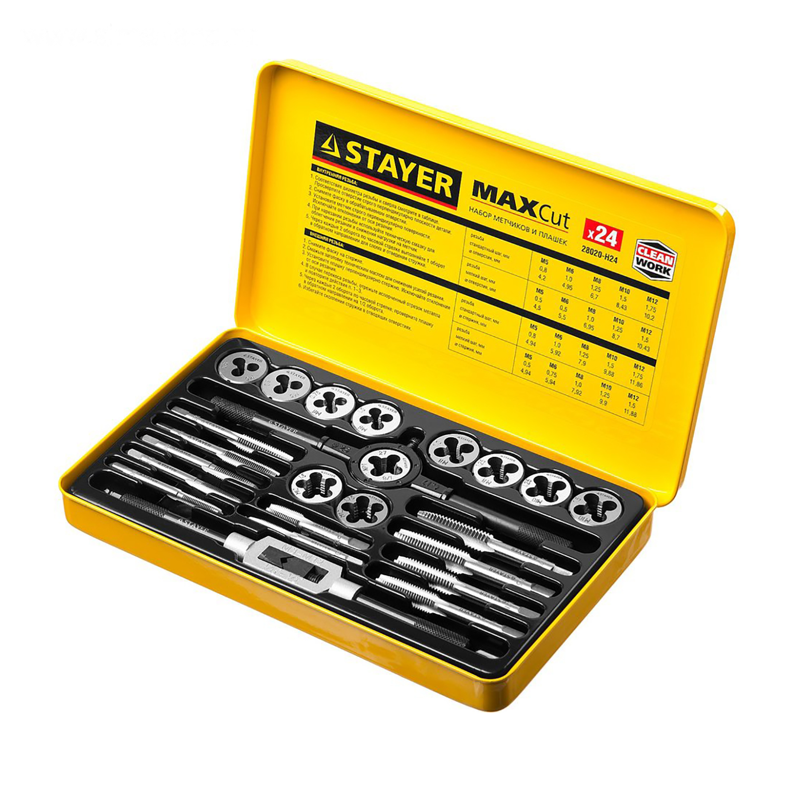 Набор метчиков и плашек STAYER Master, метчики 11шт, плашки 11 шт, 24 предмета