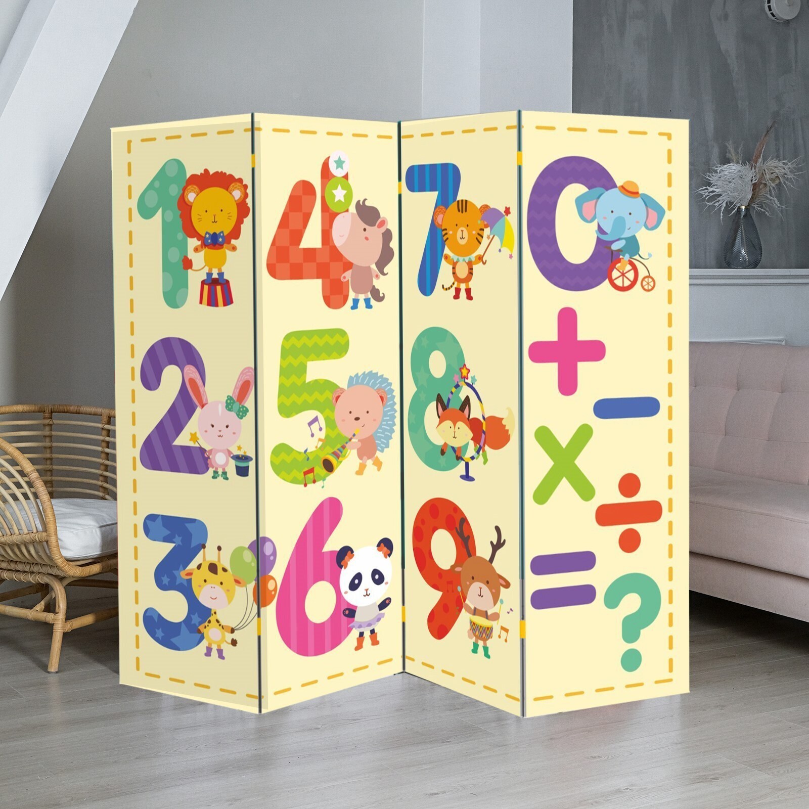 Ширма "Цифры и зверята", 200 х 160 см