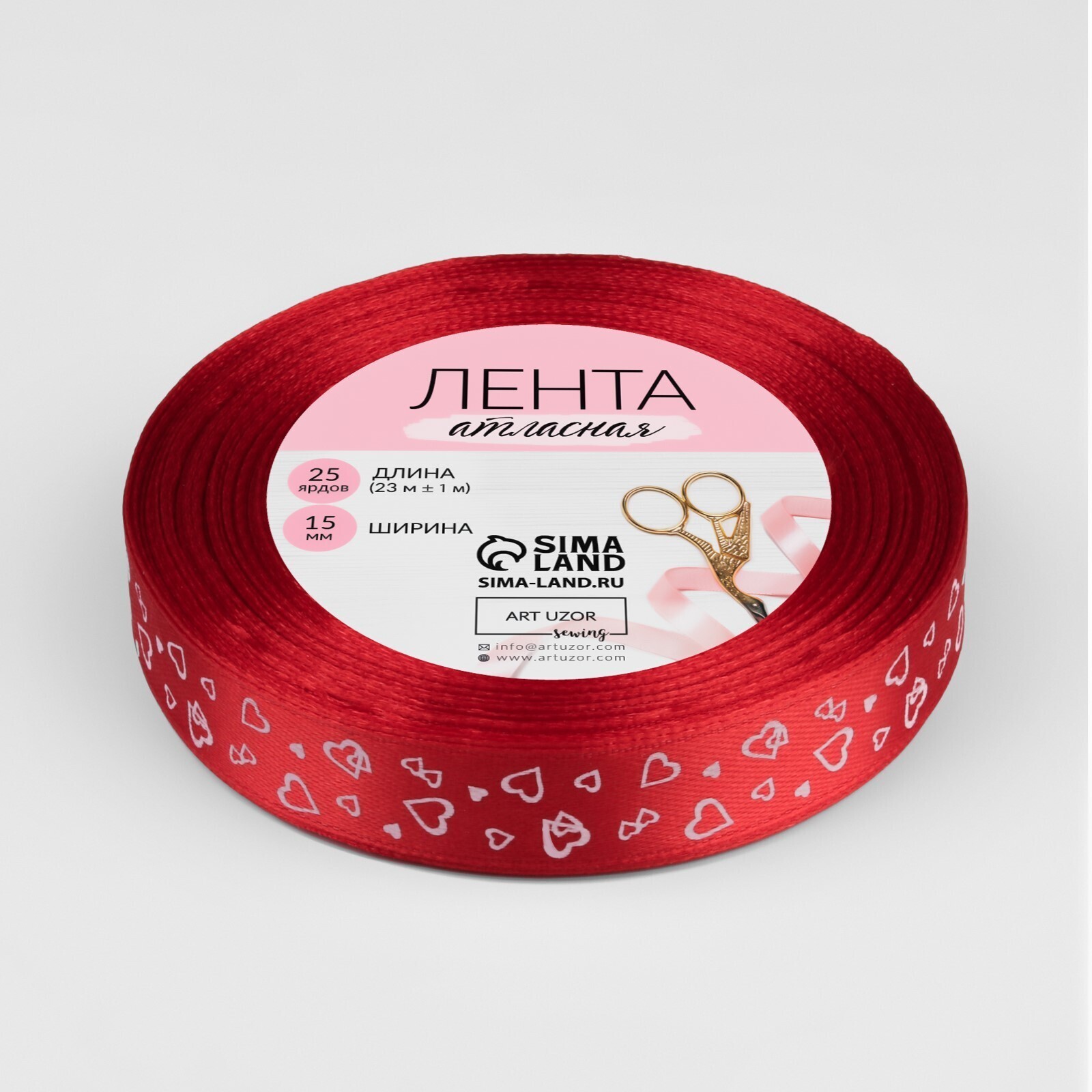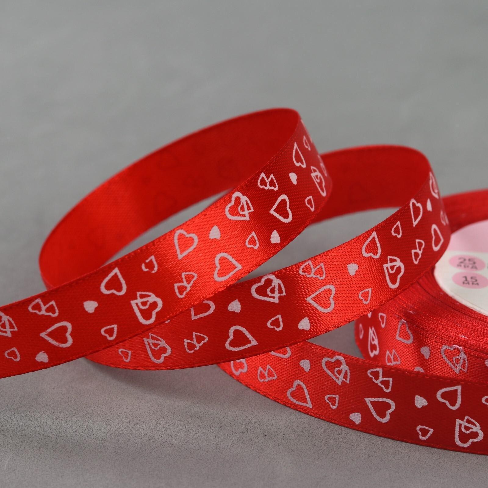 Лента атласная «Сердца», 15 мм × 23 ± 1 м, цвет красный №026