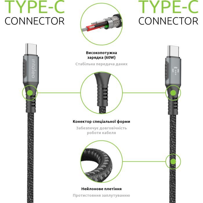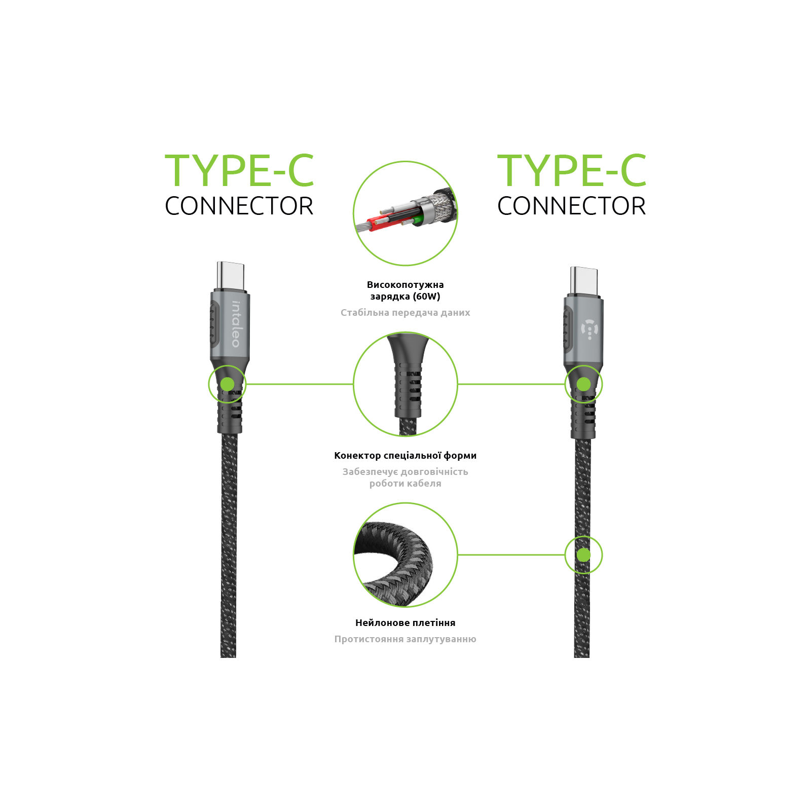 Дата кабель USB-C to USB-C 1.2m CBGPD60WTT1 60W grey Intaleo (1283126518096)