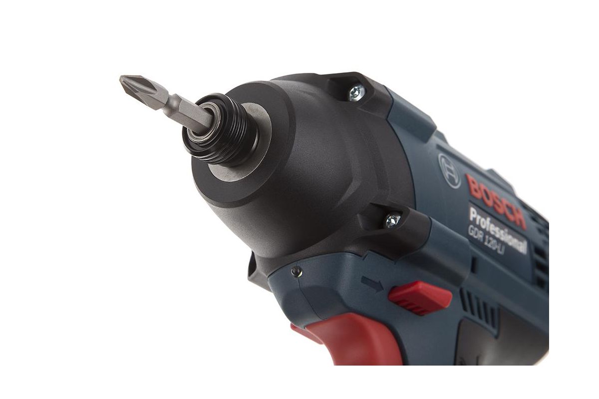 Импульсный гайковерт GDR 120-LI служит для заворачивания и выворачивания шурупов или гаек. Светодиодная подсветка обеспечивает эффективное освещение рабочей зоны в затемненных местах. Патрон инструмента представляет собой внутренний шестигранник размером 1/4''. Головка гайковерта соединена с корпусом при помощи 4 винтов, что обеспечивает простой демонтаж конструкции.