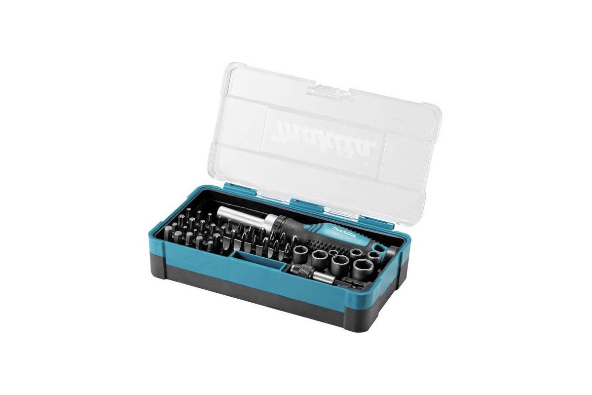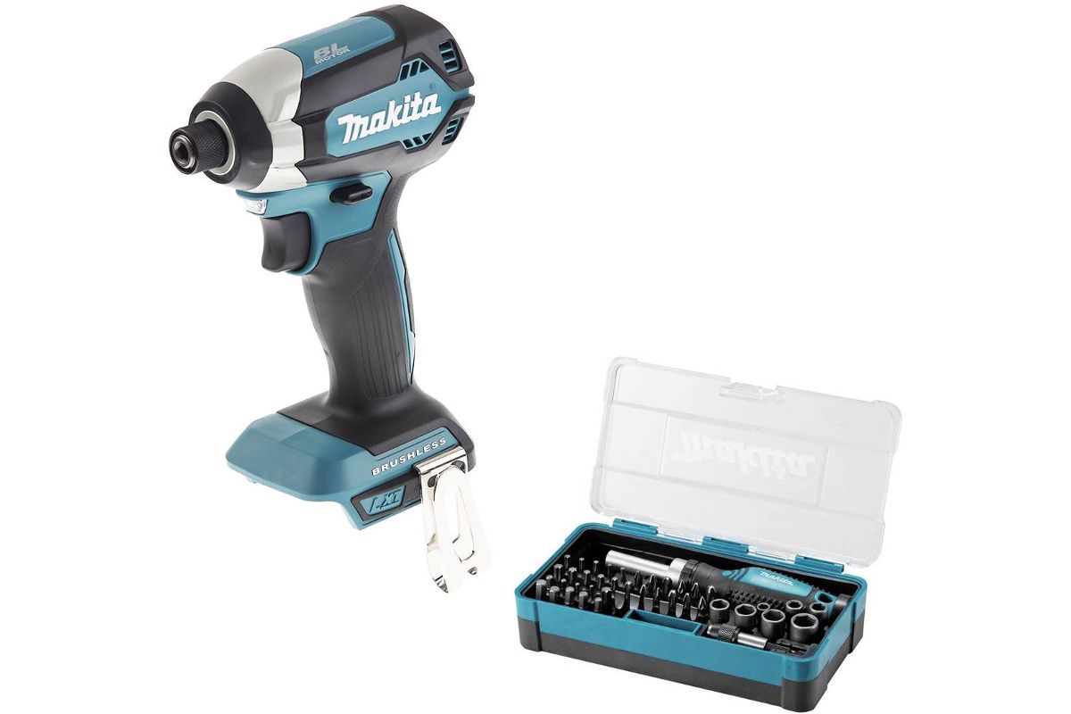 В состав набора входят: Шуруповерт акк.MAKITA DTD153ZJ уд б/щет 18В Li-ION 0-3400об/м 1/4'' 170Нм БЕЗ АКК.и ЗУ 1.3кг, Набор бит и головок MAKITA B-36170 47 предметов + отвертка