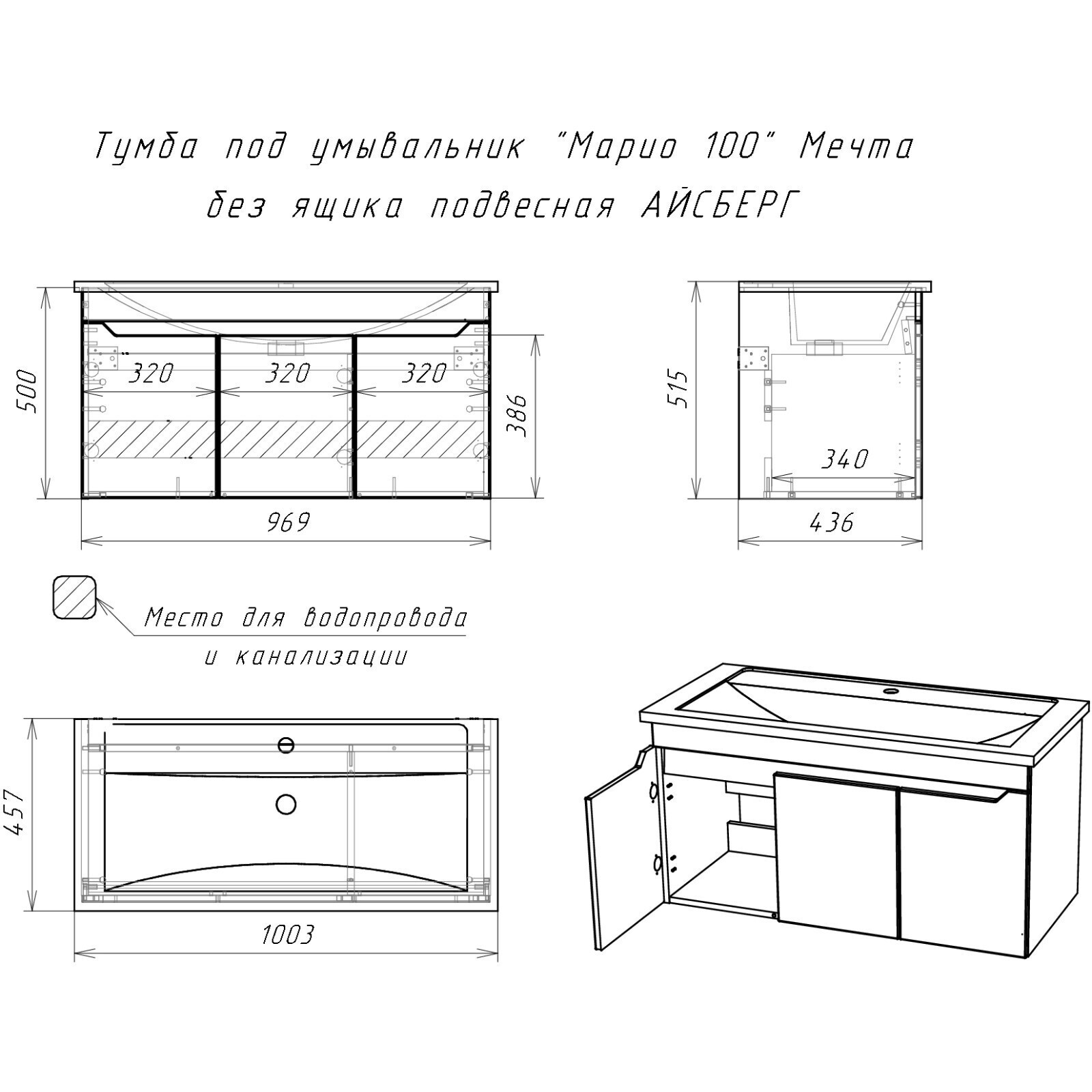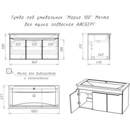 Тумба с раковиной "Марио 100" Мечта без ящика подвесная АЙСБЕРГ