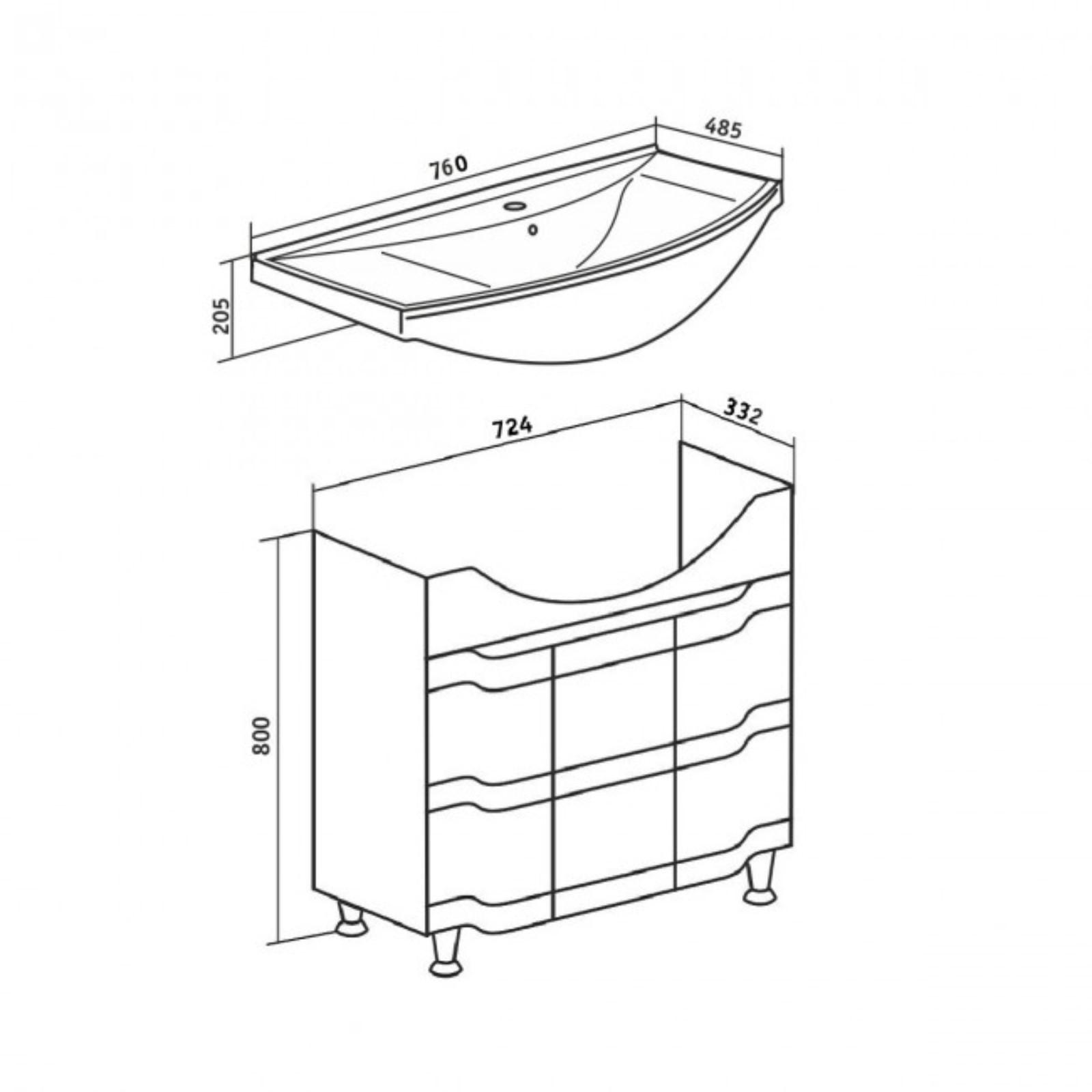 Тумба "Стиль 75" с раковиной "Стиль 75"