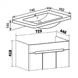 Тумба "Парма 75" подвесная, 3 двери, с раковиной "Omega 75"