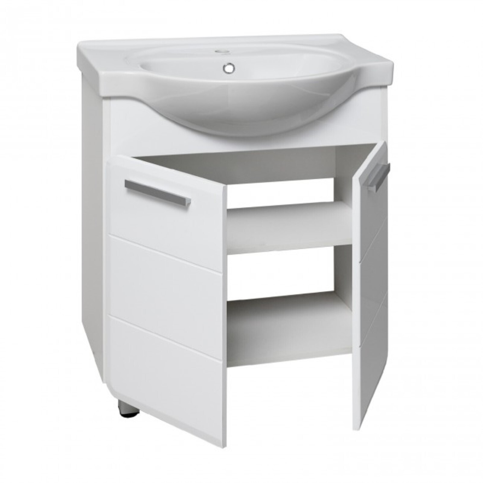Тумба под умывальник напольная с двумя распашными фасадами и одной внутренней полкой.