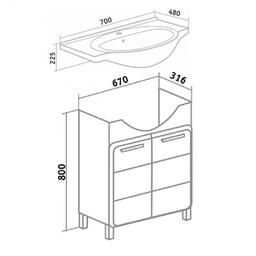 Тумба "Эрика 70" с раковиной "Erica 70"