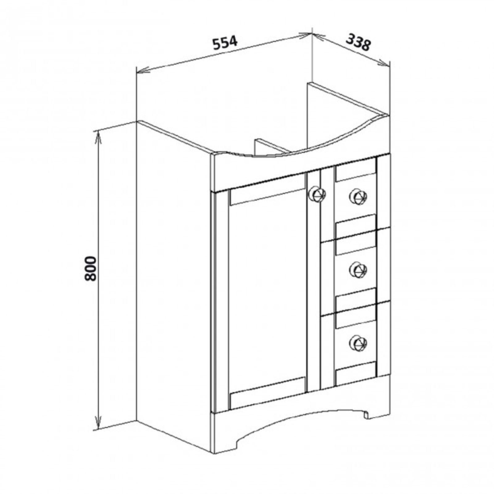 Тумба напольная с одним распашным фасадом и тремя выдвижными ящиками.