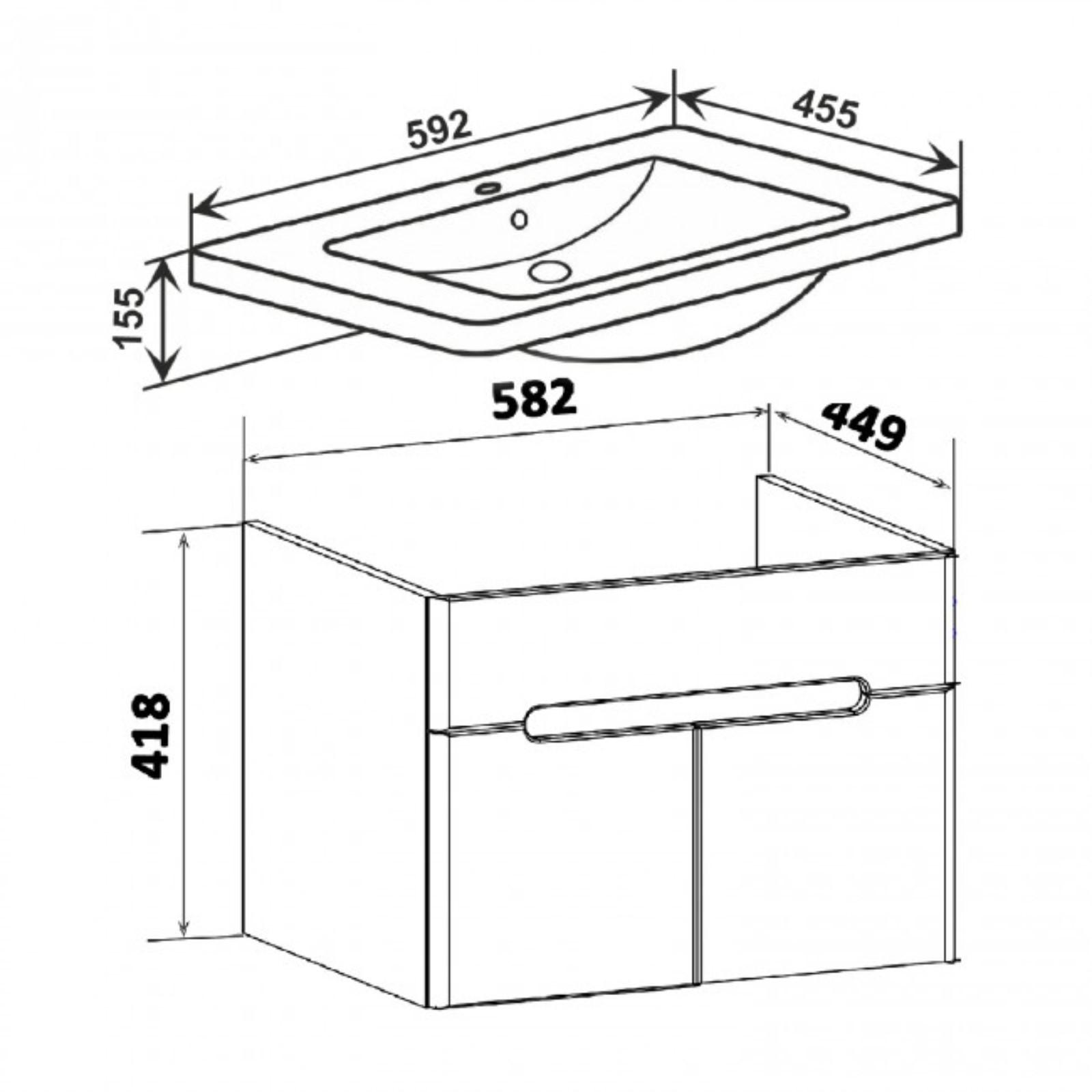 Тумба "Парма 60" подвесная, 2 двери, с раковиной "Omega 60"