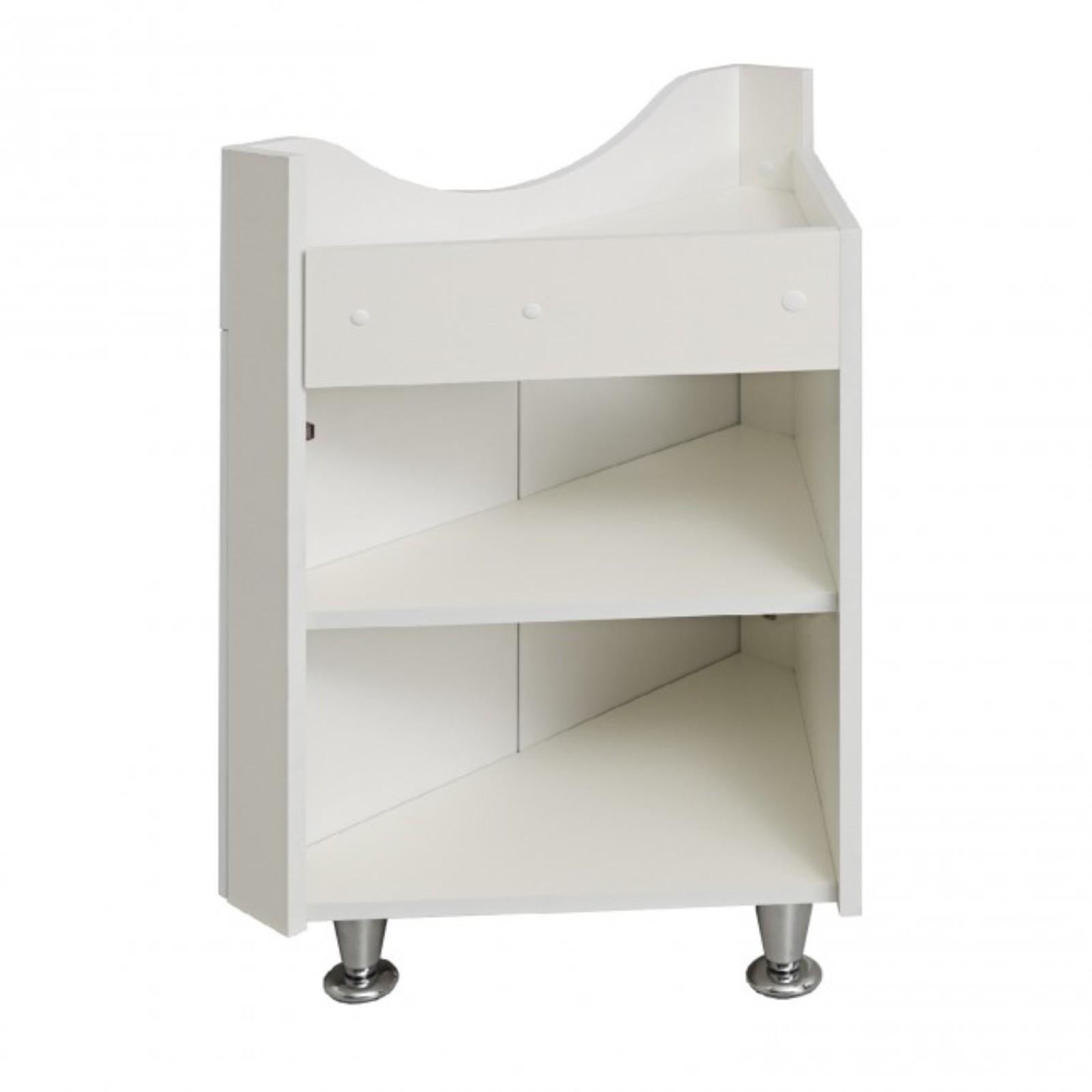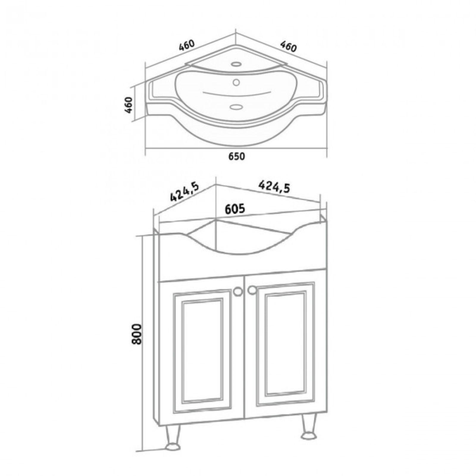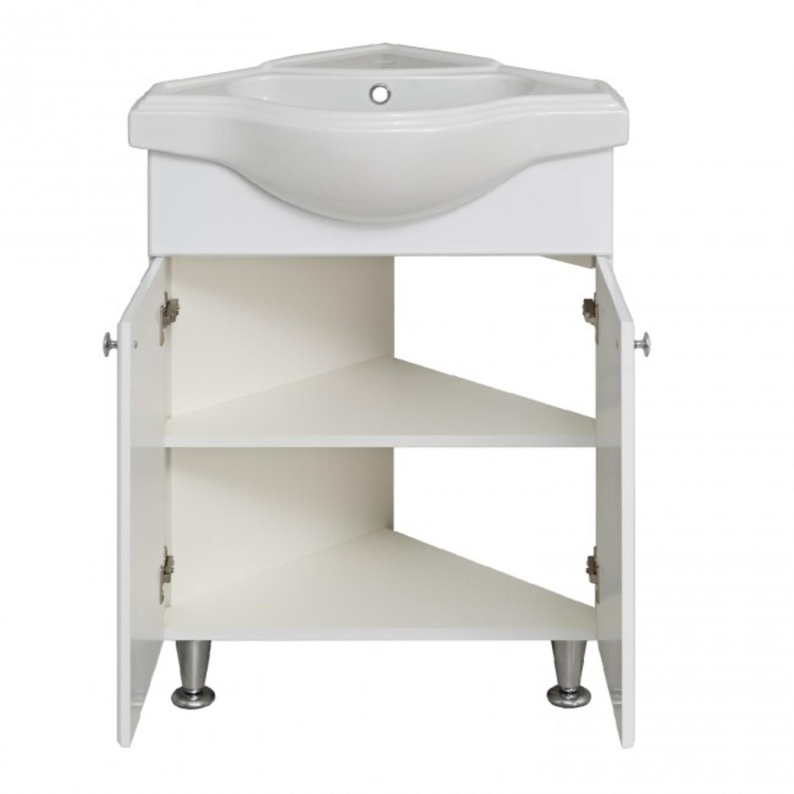 Тумба угловая напольная с двумя распашными фасадами и одной внутренней полкой.