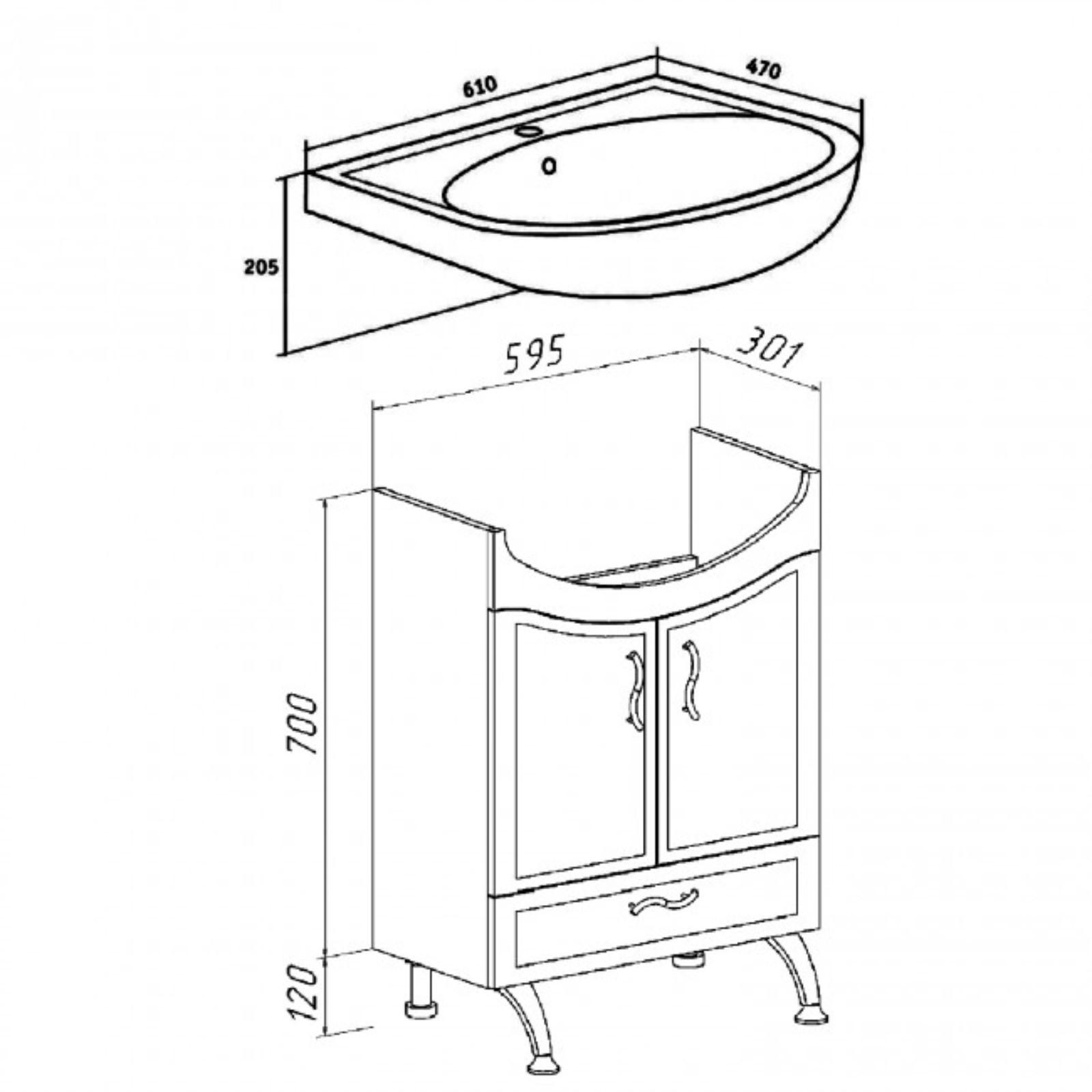 Тумба "Севилья 60" с раковиной "Уют 60" 47 х 61 х 80 см