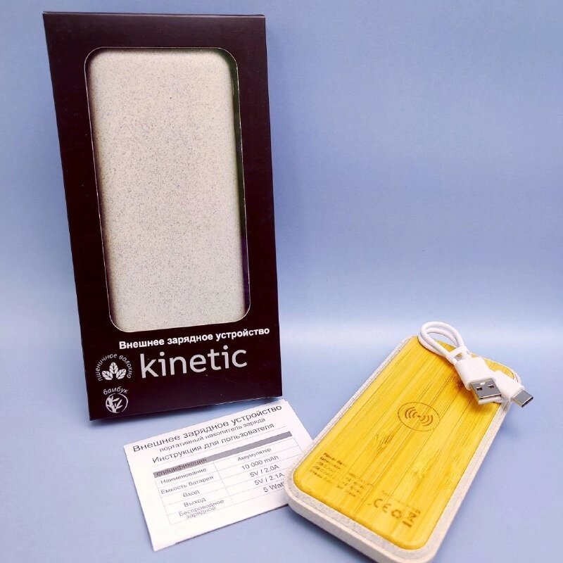 Внешний ЭКО аккумулятор (POWERBANK) Tambuko спроводной ибеспроводной зарядкой, 10000 mAh Kinetik