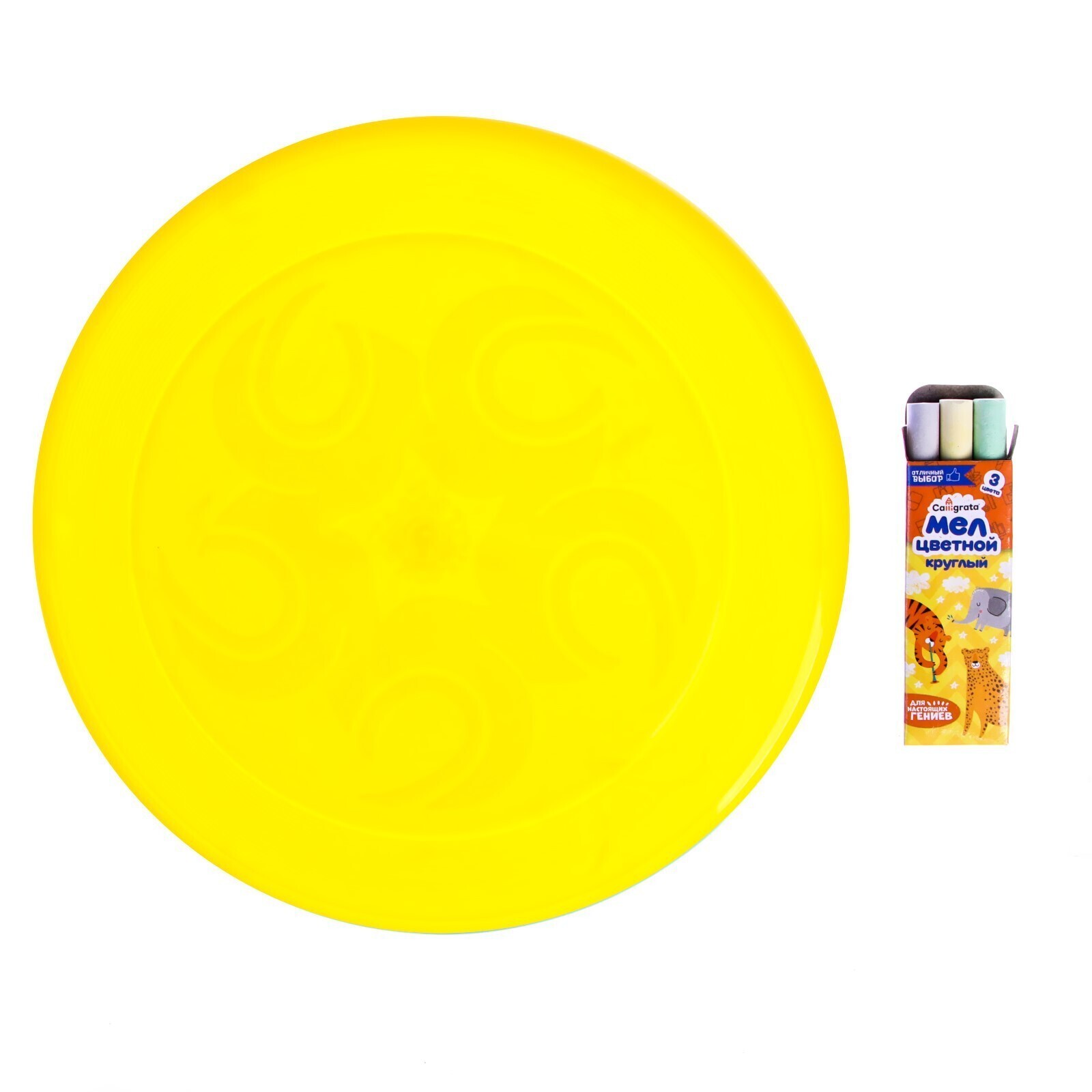 Летающая тарелка, 23 × 23 × 2,7 см, цвет жёлтый + мел в подарок