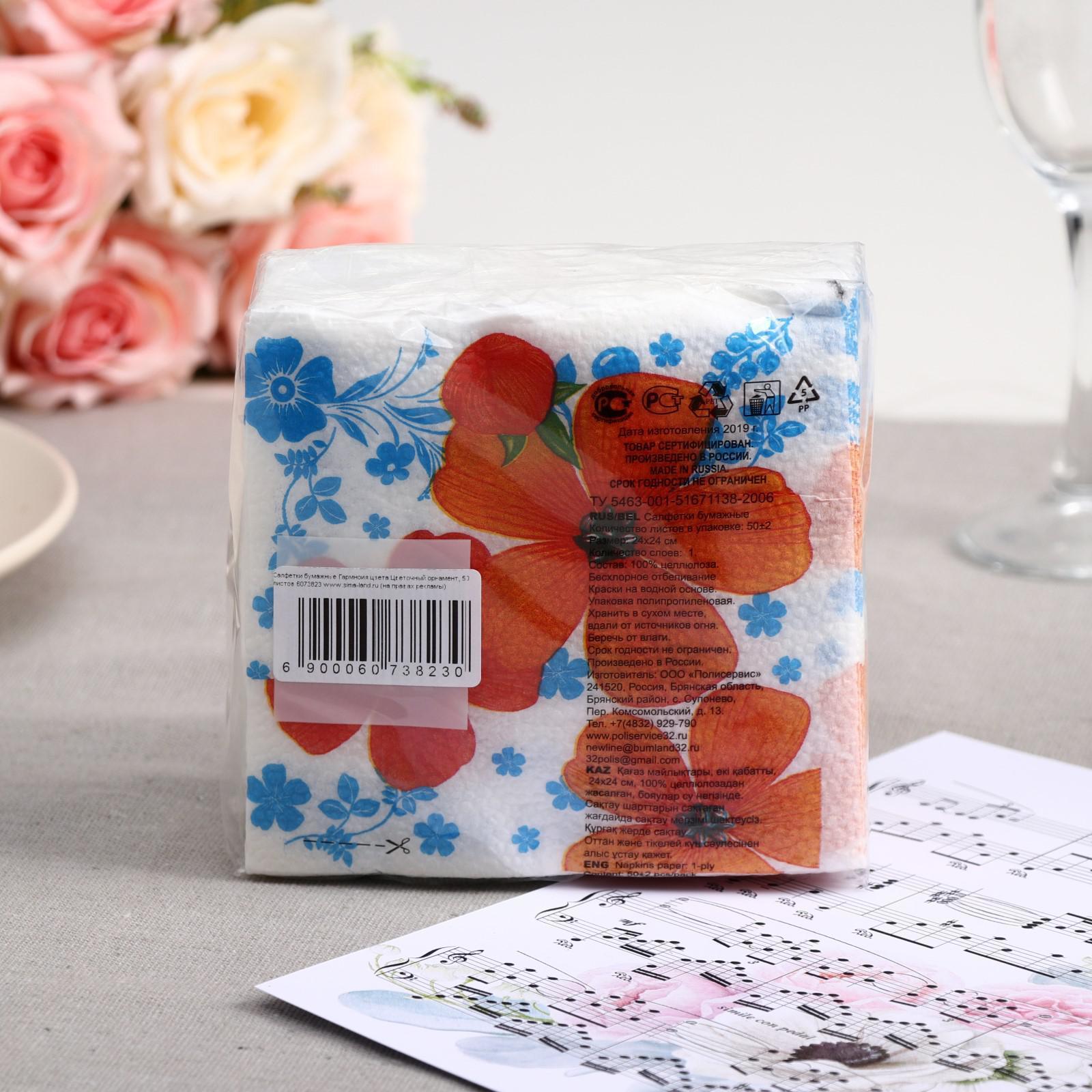 Салфетки бумажные «Гармония цвета. Цветочный орнамент», 50 шт.