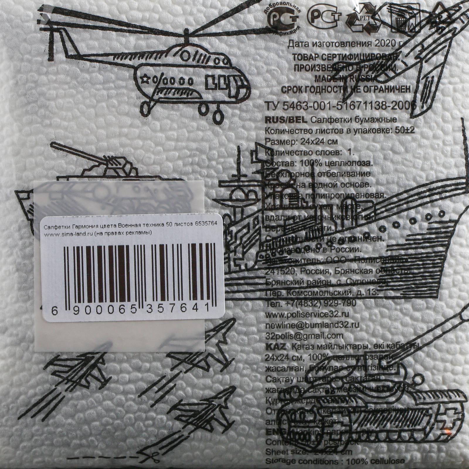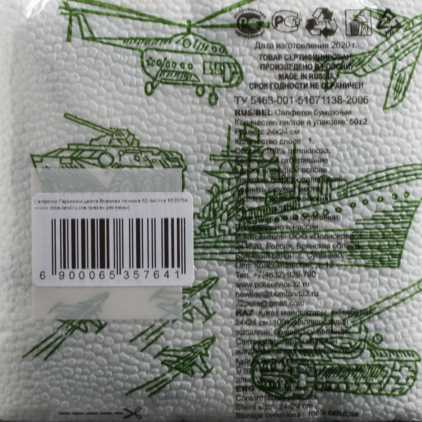 Салфетки бумажные «Гармония цвета. Военная техника», 50 шт.
