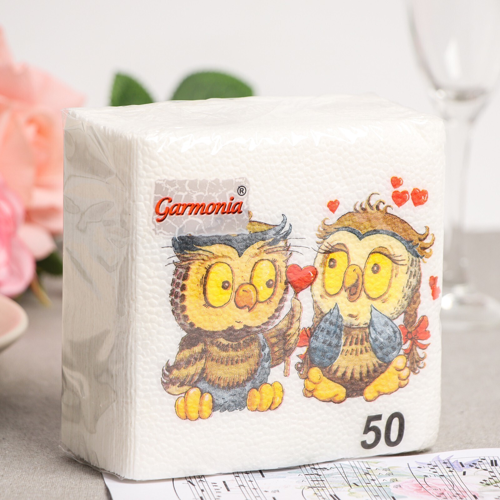 Салфетки бумажные Гармония цвета многоцветие Милые совы 50 листов
